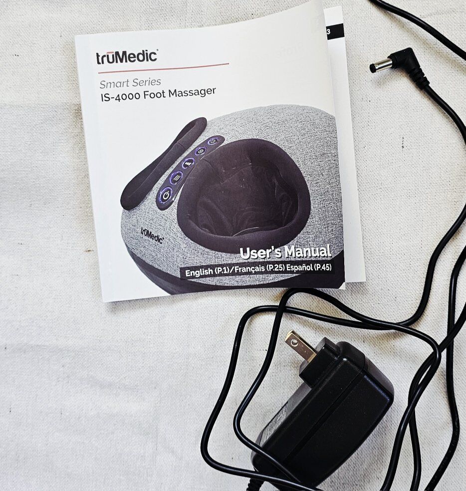 TruMedic Foot Massager, model IS-4000, in new condition. This was a gift and has never been used. TruMedic is a respected, well rated brand of home and professional use medical and self care devices. The massager has three intensity settings, plus heat settings and is programmable. Included are the power cord and printed instructions.