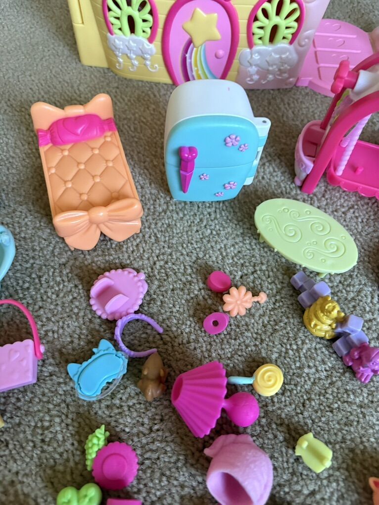 My Little Pony MLP Ponyville Set 4. Includes everything shown in photos: house, mini ponies, furniture, food, clothes, and accessories, from various sets. All in good condition. Text only. Cash or Venmo.