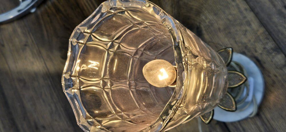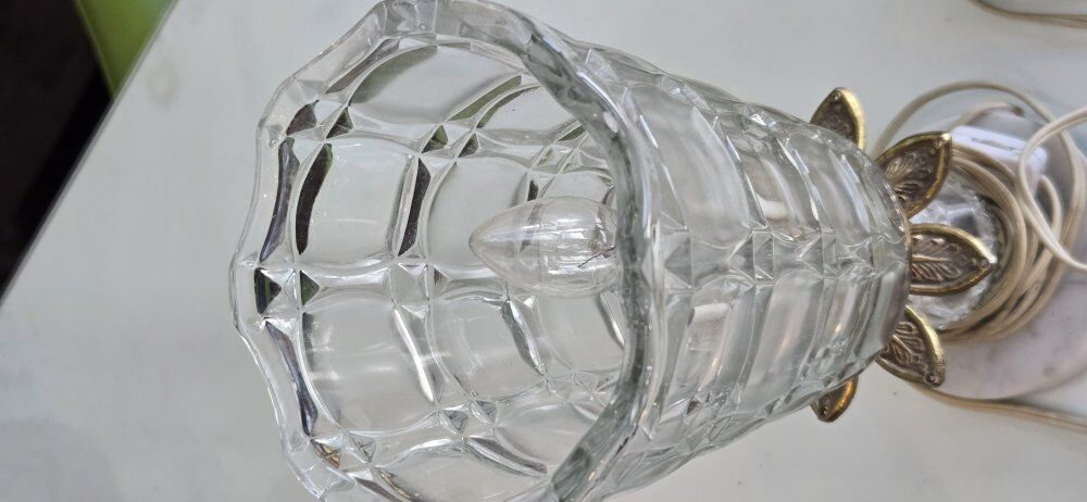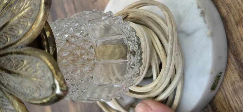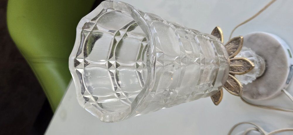 ZelleVintage catco Italian cut glass regency style lamp w/ marble base made in Italy. Leviton cord with a switch, commonly used with older or vintage electrical items. 12" tall 5" wide spanish fork