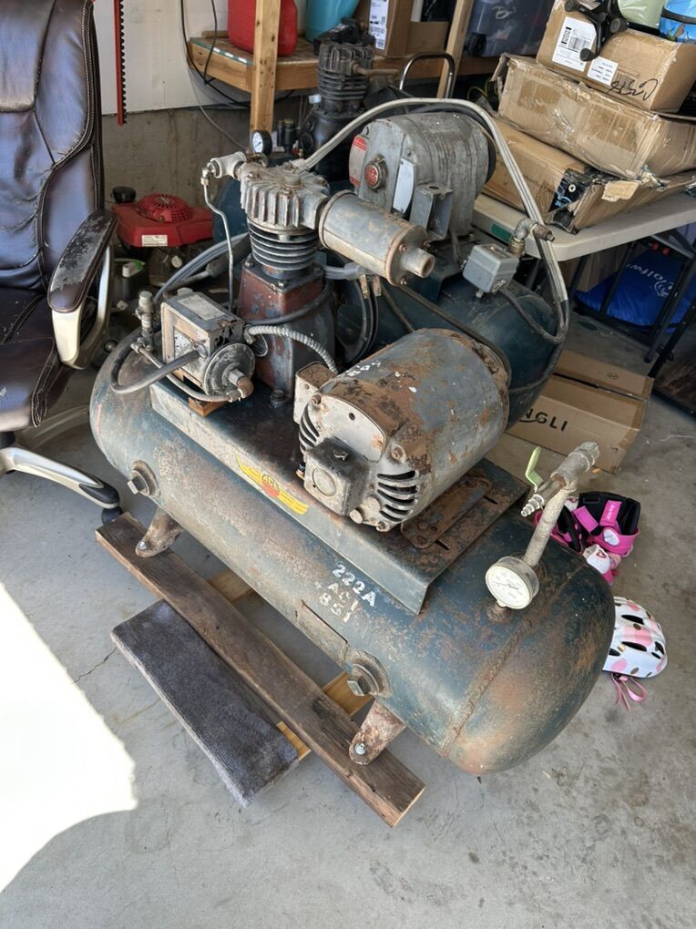 VenmoAir Compressor 30 gallon, 220v power cord. Works well. This is one of two that I have for sell. This one has a small leak that should be easily fixed.