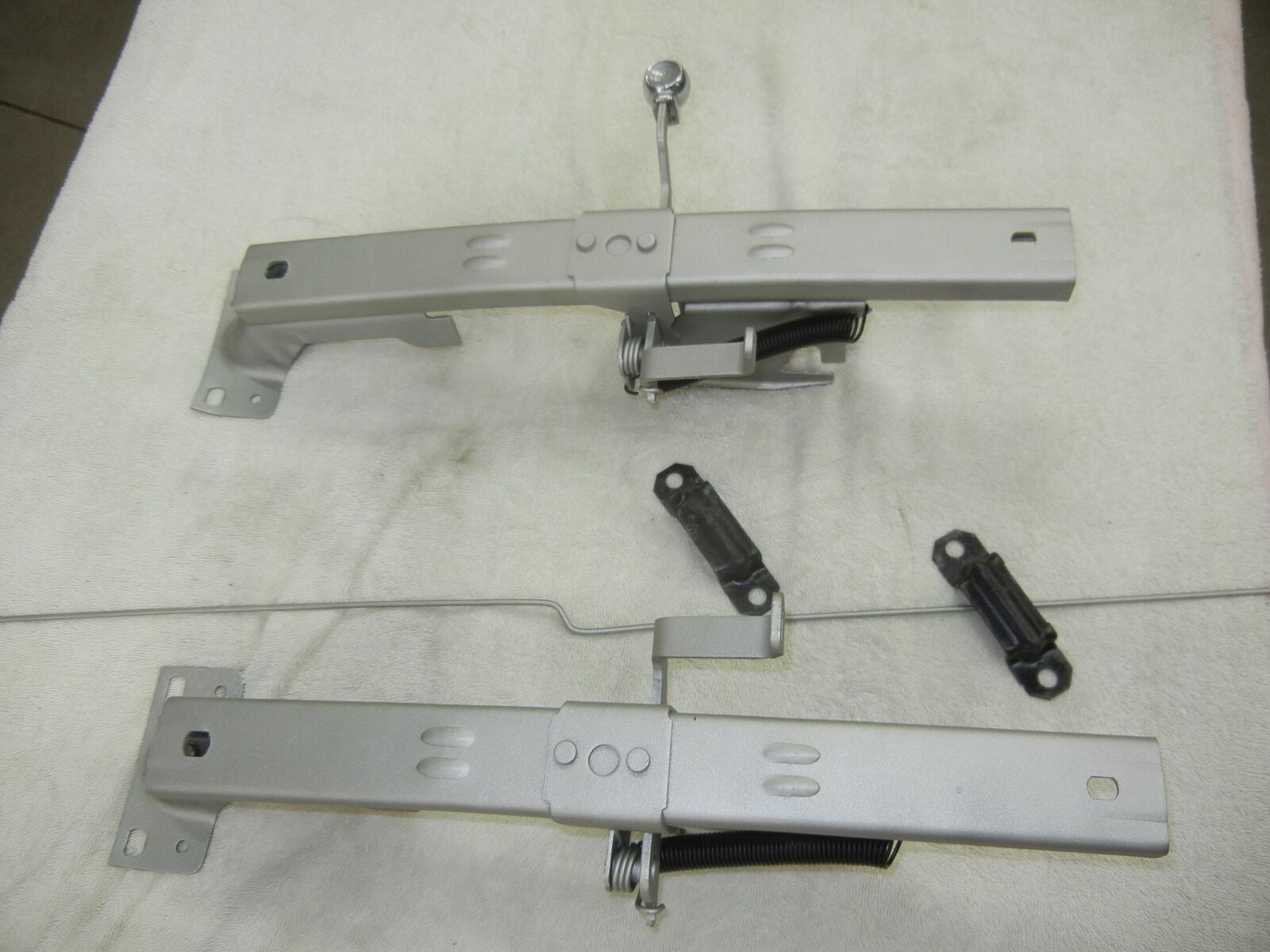 Very nice restored set of 1955-56-57 Bench seat sliders with track mounts for the front to floor Also comes with original adjuster rod and has Factory chrome adjuster ball