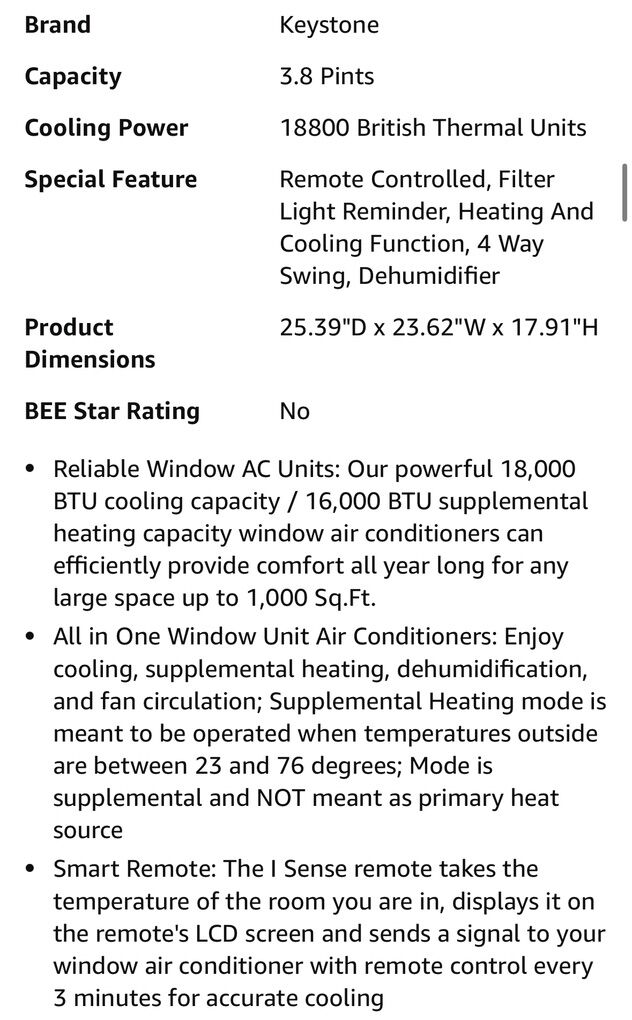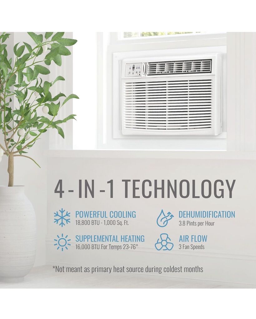 ApplePayKeystone 18,800 BTU Window-Wall Air Conditioner with 16,000 BTU Supplemental Heating, 230V, Window and Wall AC Unit for Living Room, Apartment, Large Rooms up to 1000 Sq.Ft.