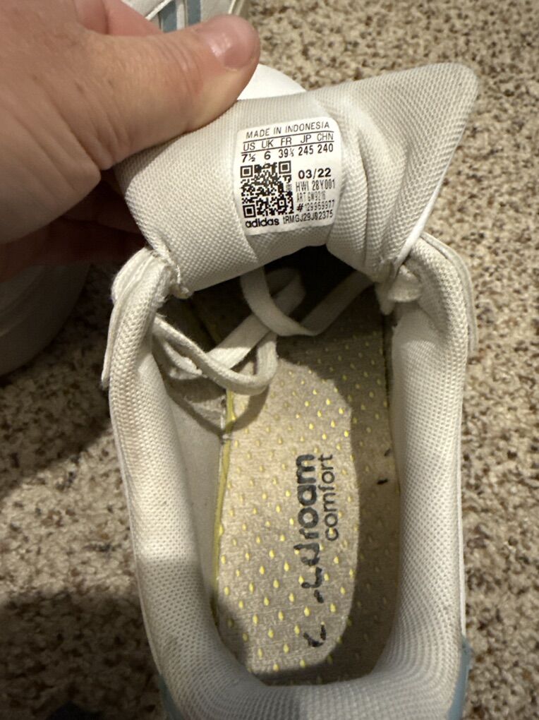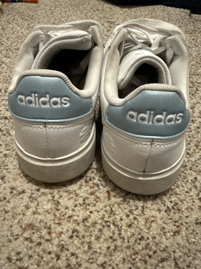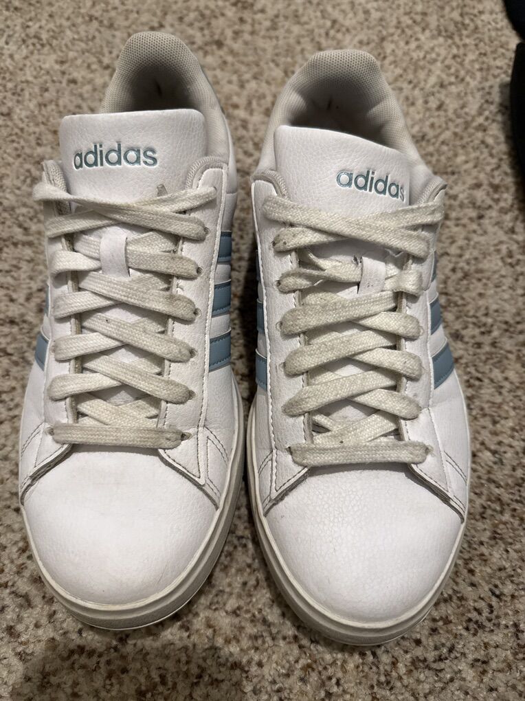 VenmoUsed but great condition Adidas White with blue stripes Not rips or tears Lace up Women’s size 7 1/2 Located American fork/highland Cash/venmo $5