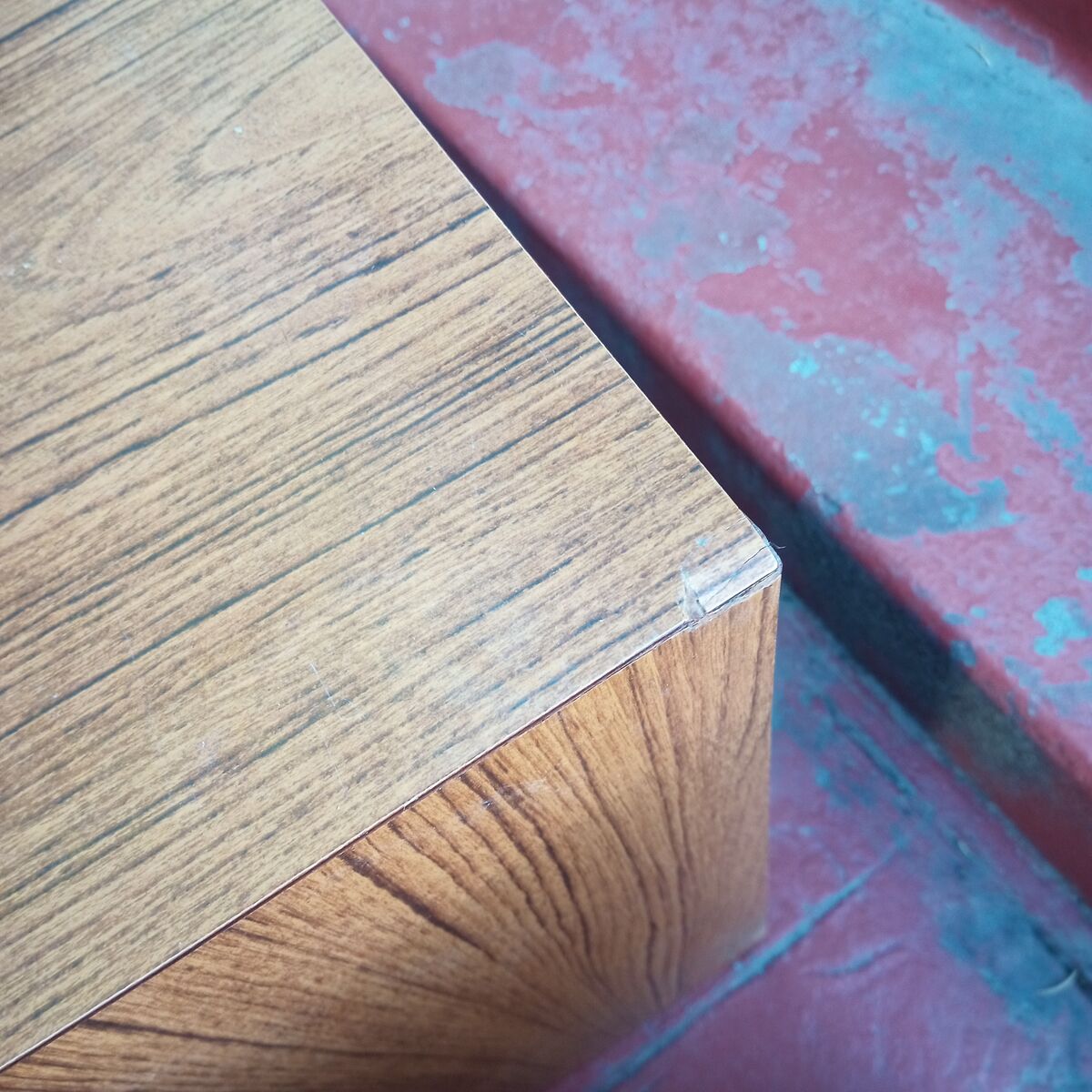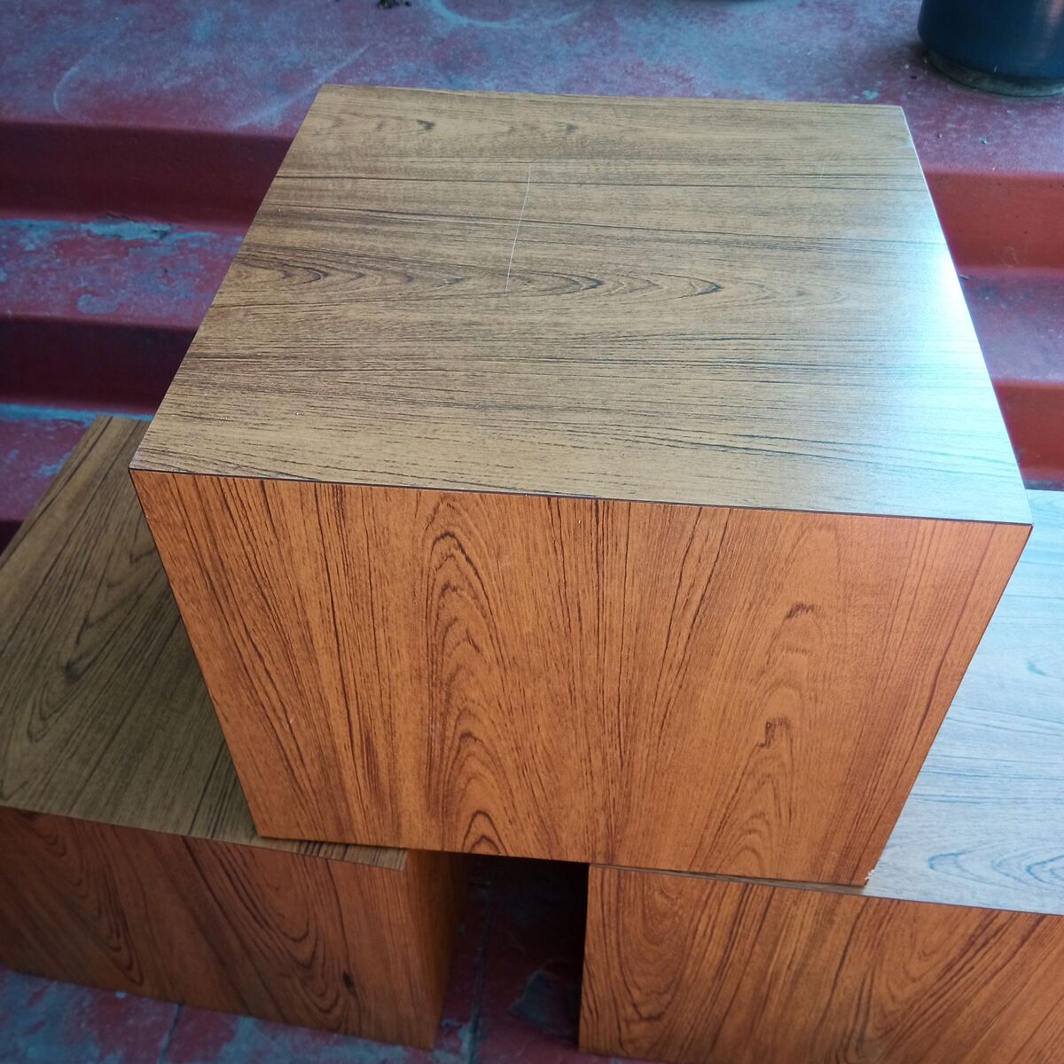 Set of 3 vintage 'walnut' formica cube end/side tables