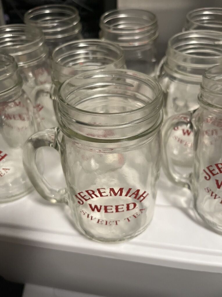 VenmoBrand new Jeremiah Weed sweet tea mason jar glass mugs with handle. Red logo bar. Have 10 of them. 2 of them for $10 dollars.