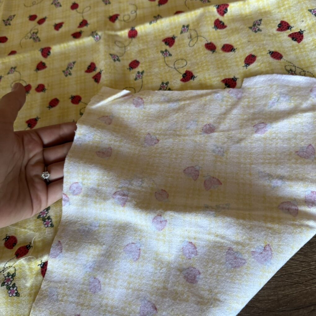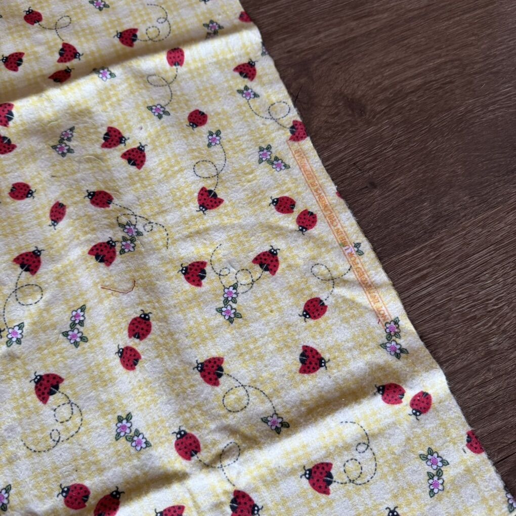 Gingham Yellow Plaid w Flowers and Ladybug Fabric 44” x 36.5”