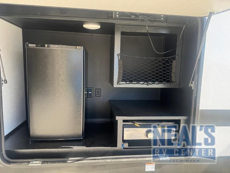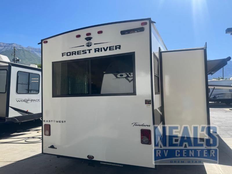 You'll feel really good spending your weekends seeing your state's famous landmarks in this Tandara fifth wheel! No matter what you do, you'll be comfortable because the opposing slides offer more living space, and the hide-a-bed sofa offers more sleeping space than you already have on the king-size bed. Not only is there a full indoor kitchen with a four-burner range, a 10 cu. ft. 12V refrigerator, and a double-door pantry, but there is also an outdoor kitchen with a drop-down TV that you can use while you grill chicken. Additionally, there are two electric awnings that will protect you while you are outside soaking up the fresh air, and the oversized pass-through storage can easily contain your favorite outdoor games and camping chairs.