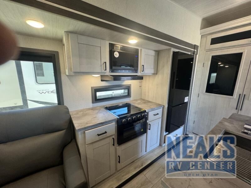 At any point you want to get away to your favorite secluded spot, you can grab your EAST TO WEST Tandara fifth wheel and head out because it has a 4 Seasons Package that will keep you protected during all seasons! There is a MORryde CRE 3000® suspension that will make traveling smooth, and the MORryde StepAbove entry steps provide a stable entrance into the unit. The Tandara has been prepped for a rearview camera, and the interior is very stylish with its artisan maple décor. Some of the luxury features you'll find are the shaker style cabinet doors, deep-seated stainless steel farmhouse sink, plus dimmable LED lights in the living area, kitchen, and bedroom!