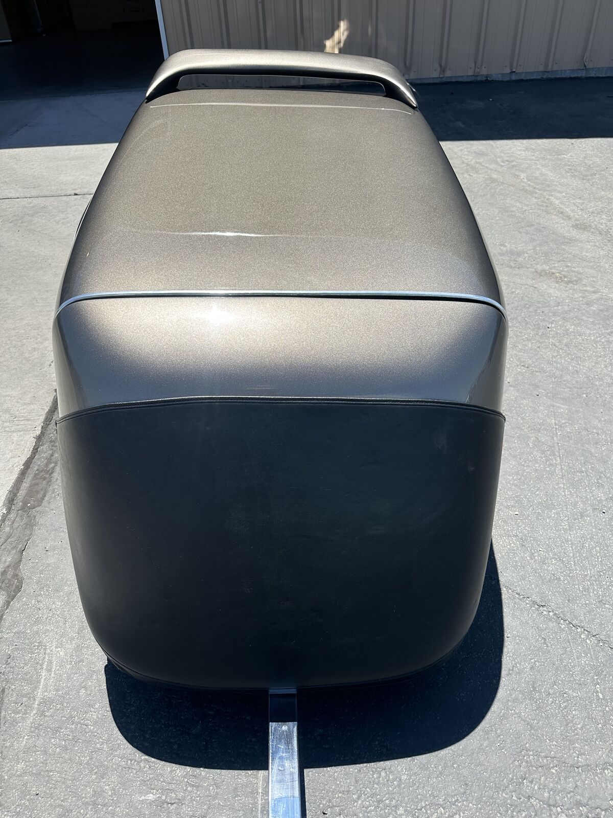 ESCAPE Elite Motorcycle trailer - TITANIUM trailer that beautifully incorporates the sleek lines and style characteristics of the Goldwing, while maintaining the unsurpassed quality and engineering for which Escapade is renowned. You’ll be amazed at the value you’ll receive with this trailer. A host of standard features and optional accessories, such as custom spoiler with brake light and interior dome light, serve to make the Elite the finest example of craftsmanship and style on the road. Air Ride Suspansion ( pump included) Painted Body (Titanium Metallic),Chrome Tounge with Swivel Coupler, Spoiler with Brake Light, Front Stone Shield, Full Carpet, Dome Light, Garment Bag, Chrome wheels with matching Spare. Pulls like a Dram! COME CHECK IT OUT, YOU'LL LIKE IT