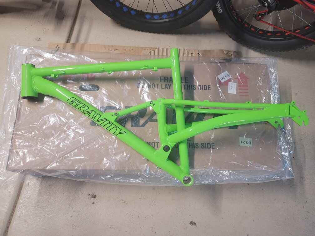 The Gravity frame is a nice one. It's a brand new downhill aluminum 21" frame for 26" fat tires. $500