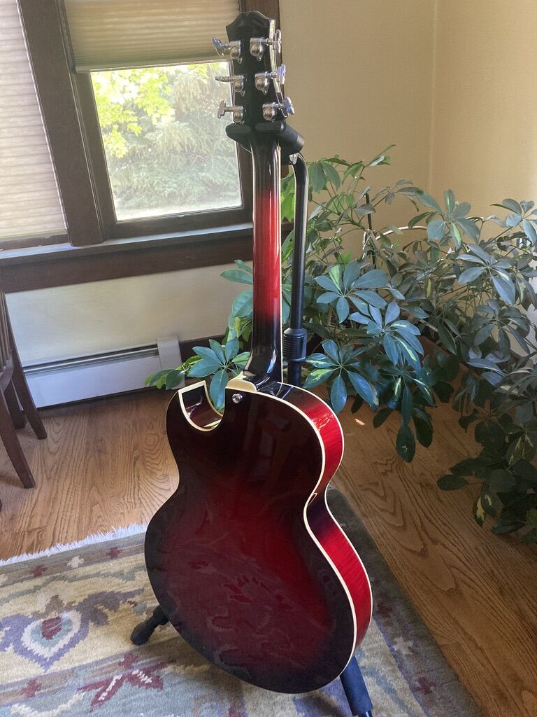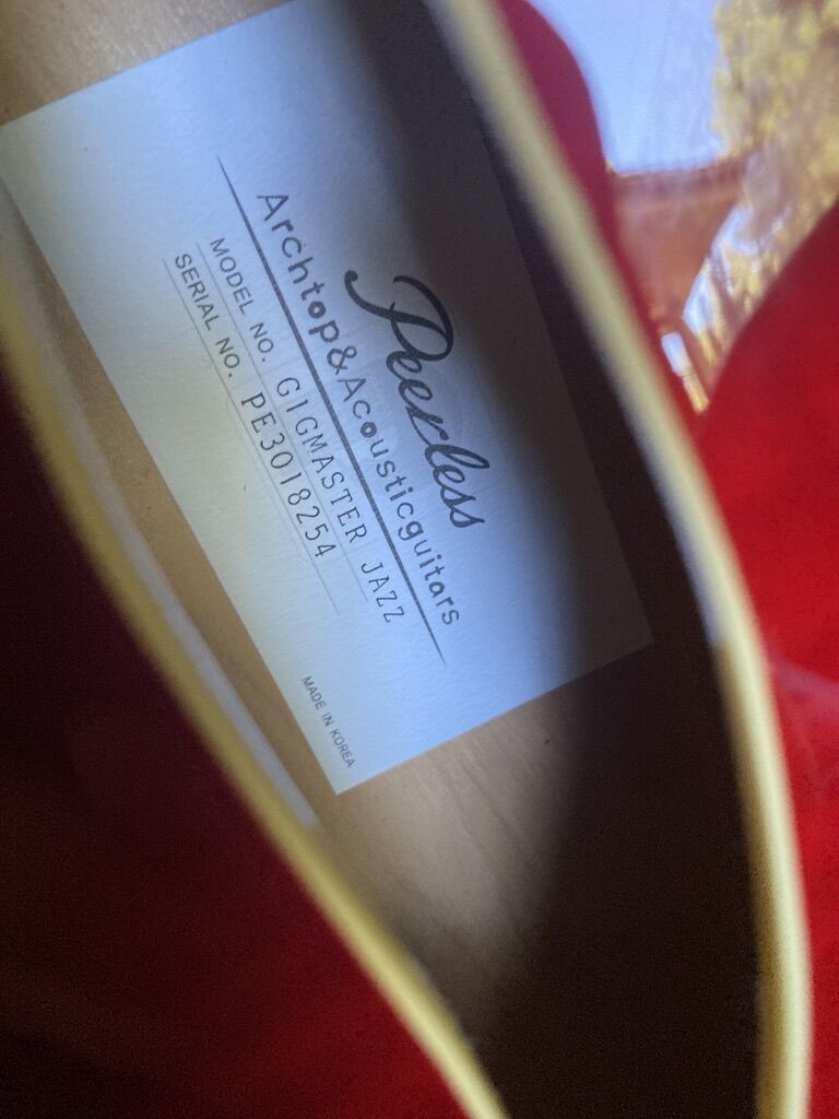 VenmoFor sale is my Peerless GigMaster Jazz Archtop which is in excellent condition. Made at the legendary Peerless Guitar Factory in Korea, the Peerless Gigmaster Jazz is a 16-inch by 3 inch Arch Top Cutaway guitar with laminated arched Flame Maple top and back, with Rosewood fingerboard, bridge, tailpiece and pickguard, and a tune-o-matic bridge, a mahogany neck and 2 humbuckers. These are fabulous jazz guitars, and are hard to find.