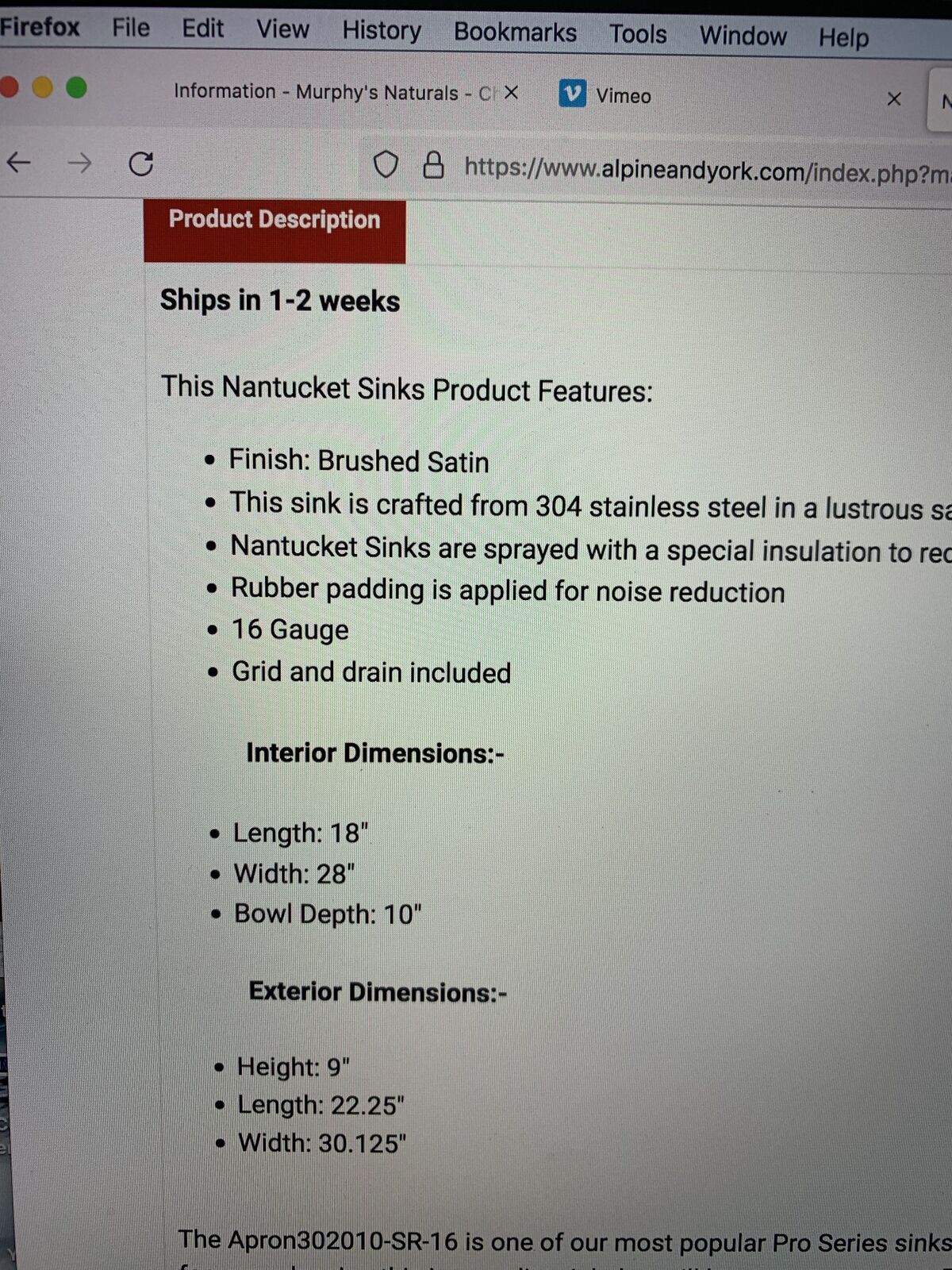 outside dimensions H 9" x L 22.25" x W 30.125" Stainless