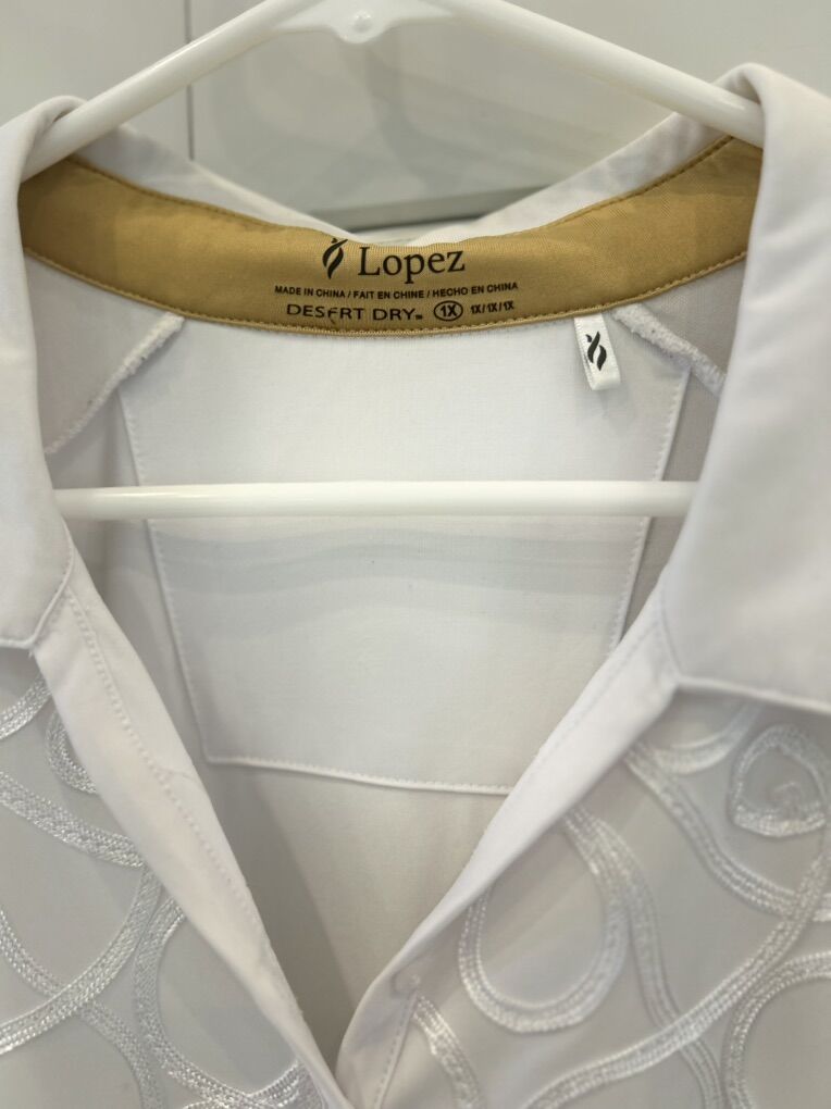 ZelleThe Nancy Lopez Golf Shirt in size 1X White is a stylish and functional polka dot top designed for the active woman golfer. Made from a blend of polyester and spandex, this shirt features a collared neckline, short sleeves, and a pullover closure. It is designed with accents like buttons and logos, making it suitable for both activewear and casual occasions. The shirt is white in color and accented with a solid pattern, ideal for the golf or tennis season. With features like slimming, lightweight, stretch, quick dry, wrinkle resistant, and breathable fabric, this shirt is a versatile and comfortable choice for women looking for quality golf clothing.