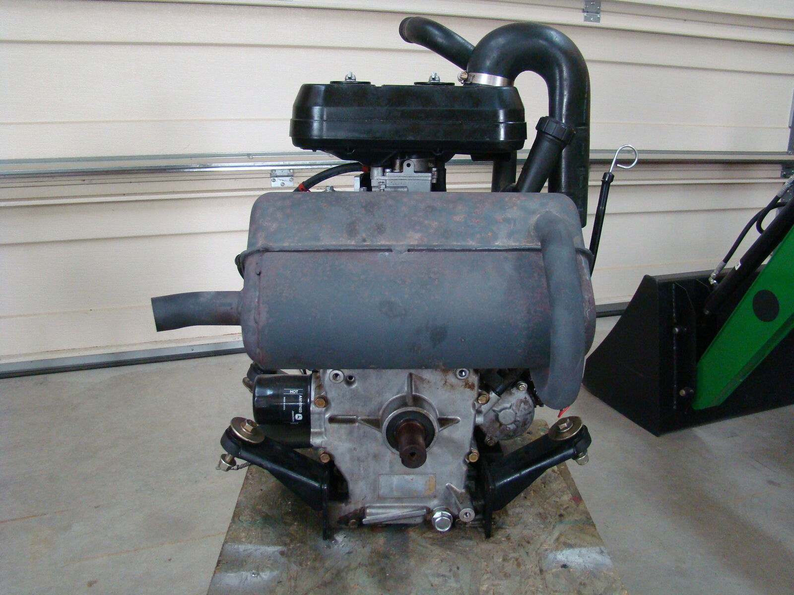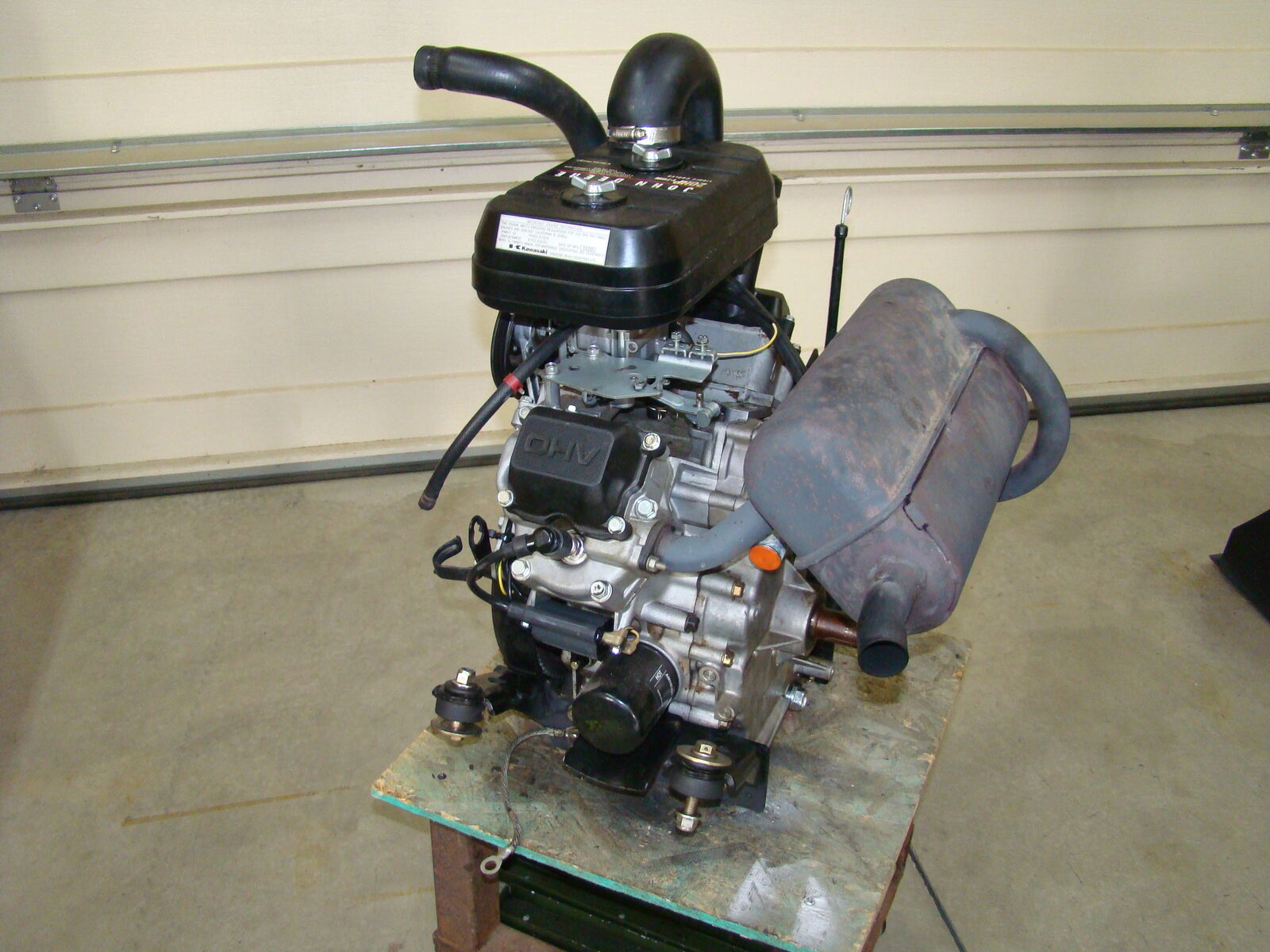 This is the Kawasaki FD620 v-twin engine out of a 2001 tractor. It has 870 hrs. It started smoking but still runs. Had a mechanic look at it and did a compression test. 120psi on left cyl. 60psi on right cyl. He said probably a broken piston ring. Should be an easy fix $500.00, OBO.