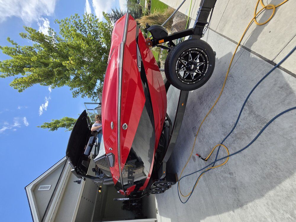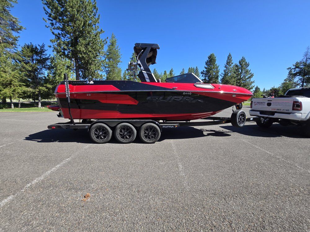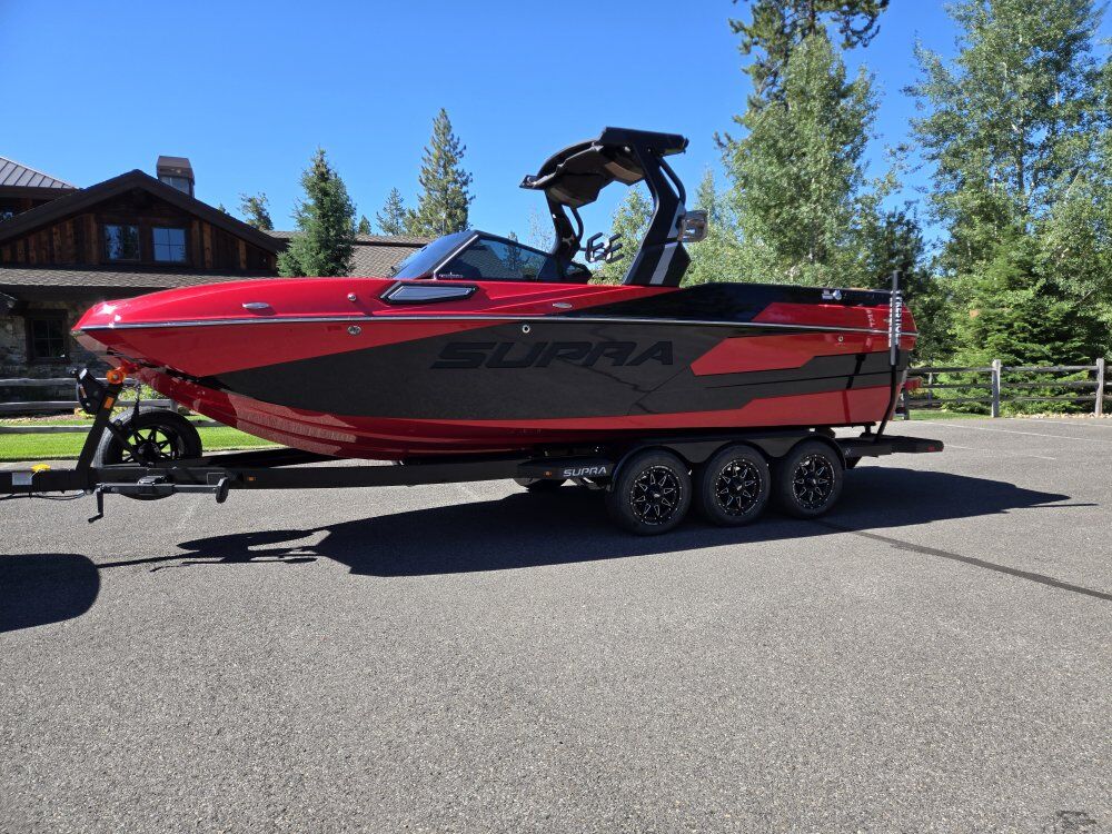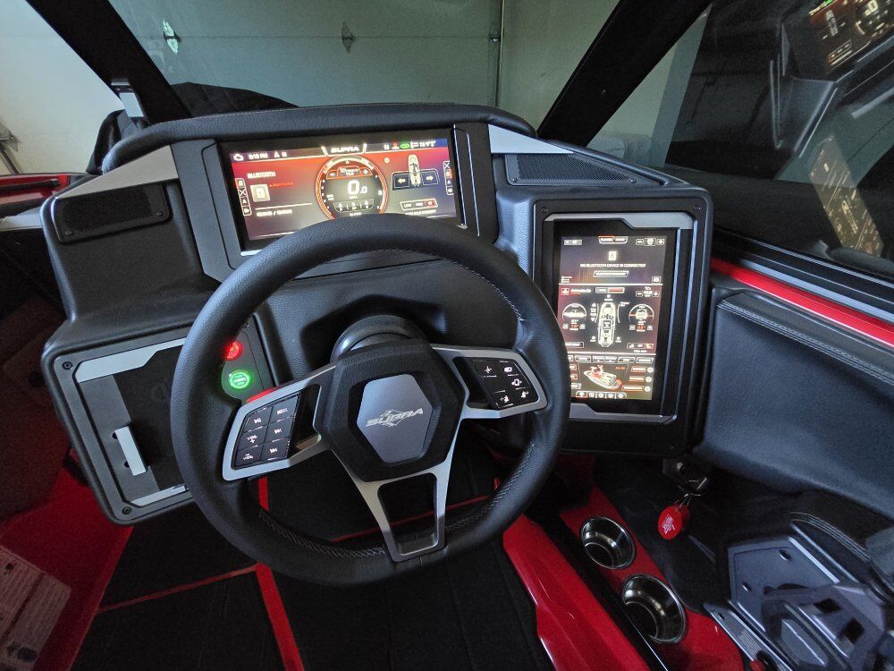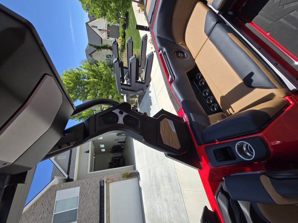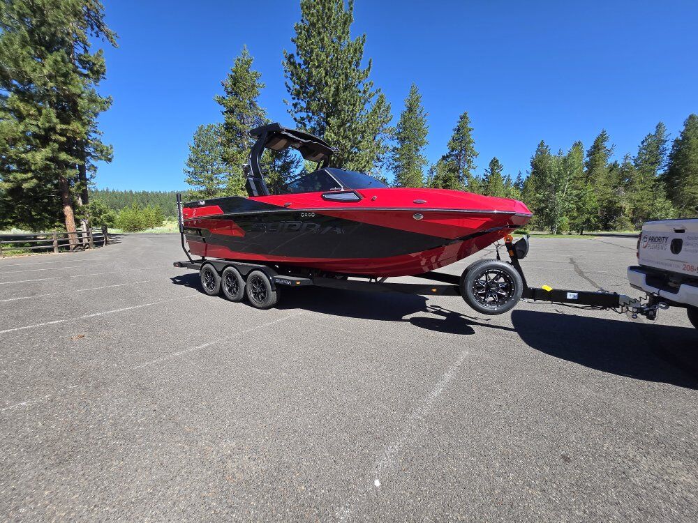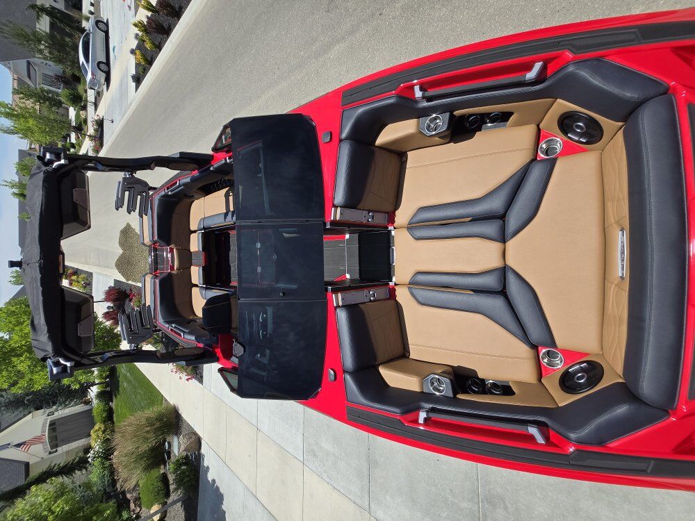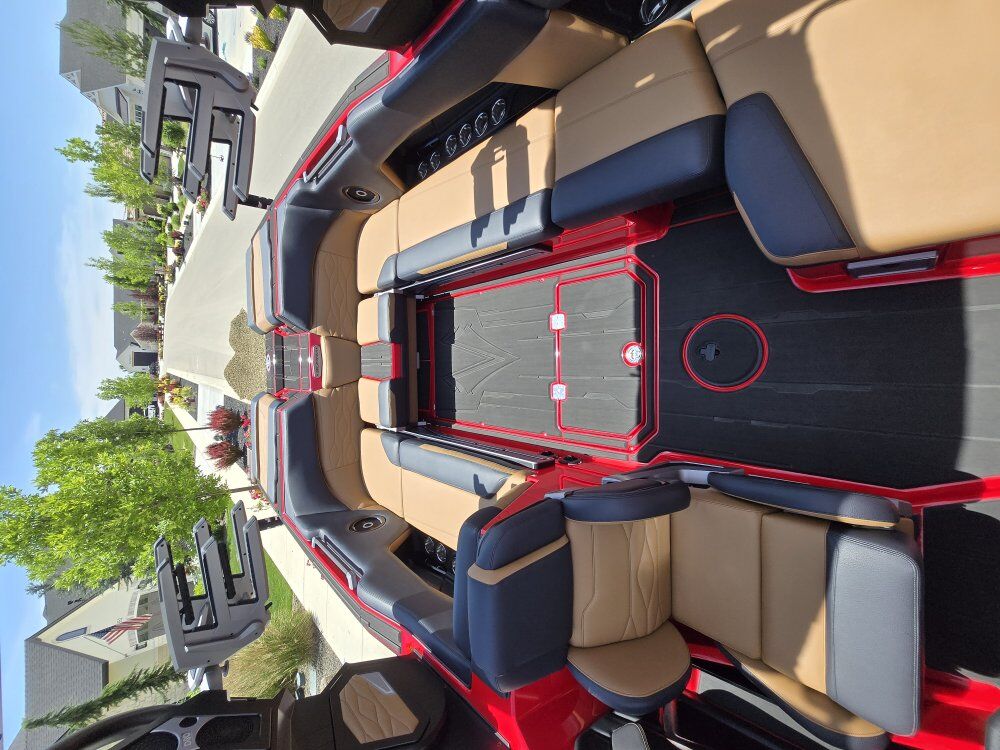 -MSRP $311,500.00 -Fire Red & Black Metallic -Black and Tan Interior w/ -Raptor 575, 6.2L Supercharged -Dual Stern Thrusters -Electric Power Assist Steering -Sundeck Flip Up Seats -4 Outlet Heater -Heated + COOLED Driver and Passenger Seats -Interior Washdown Shower -LED Docking Lights -RGB Lighting + Underwater lights -Power Stepdown Swim Platform -Sliding Rear Bench Seat + Table -Wireless Charging -Power Folding Tower + 4 Speakers + Clamping Board Racks -Power Folding Bimini Upgrade -Transom Remote -Full Cover (Black) -Tinted Windows -Ceramic Coating -Triple Axle Trailer, 18" Wheels + Spare -LED Runway Lighting -Transferrable Manufacturer Warranty