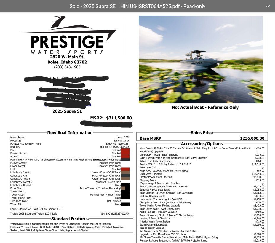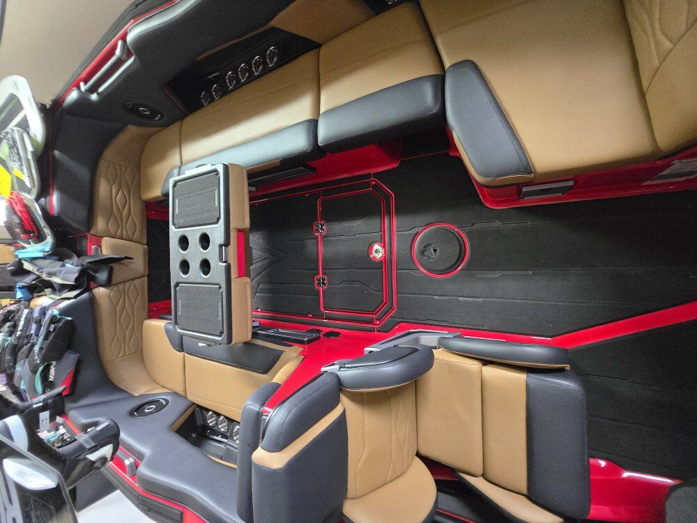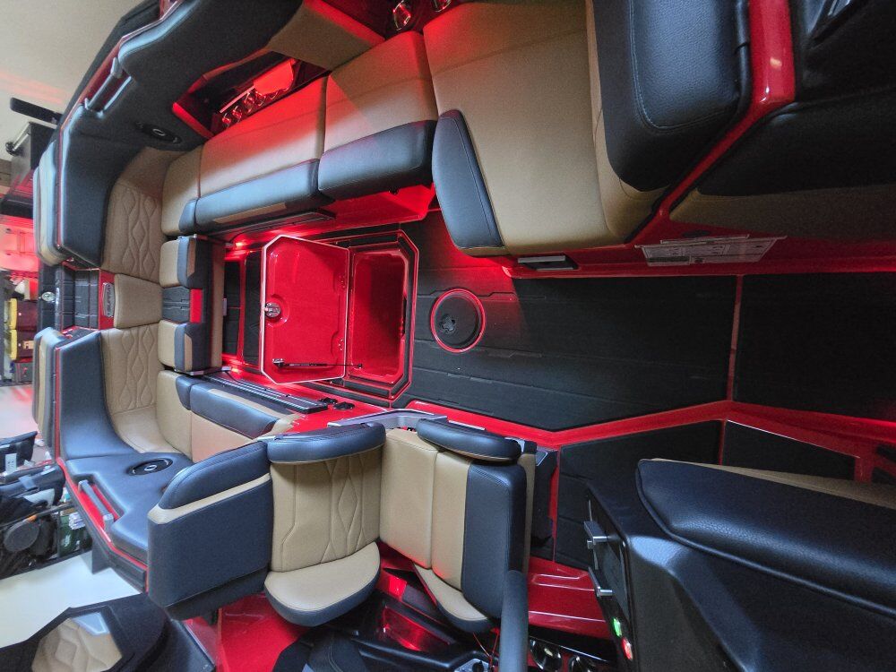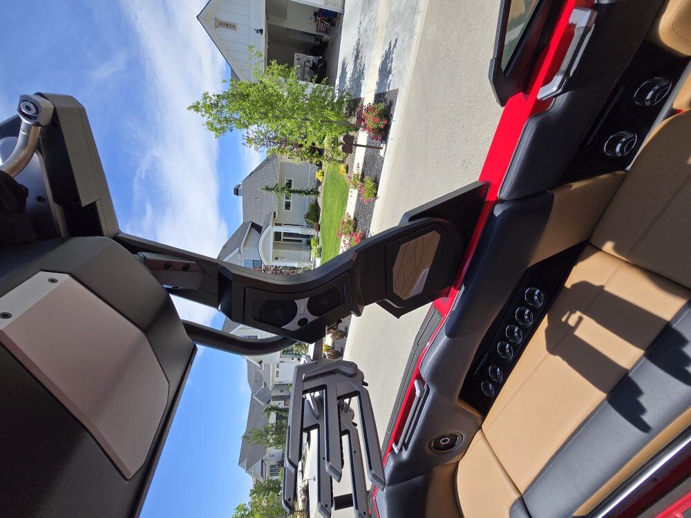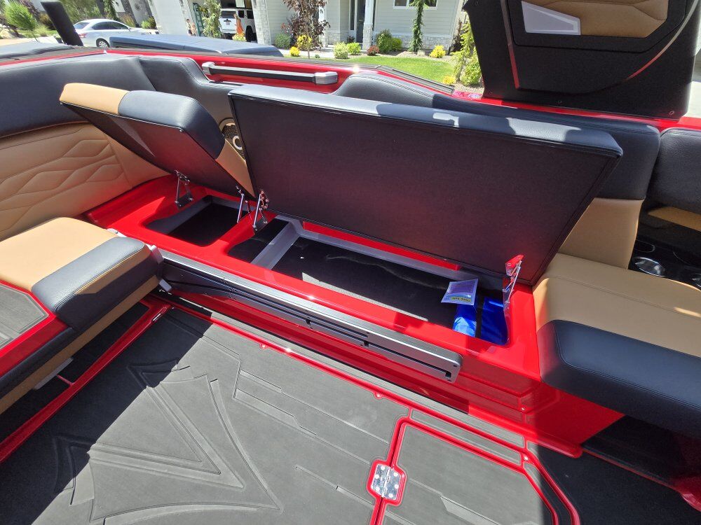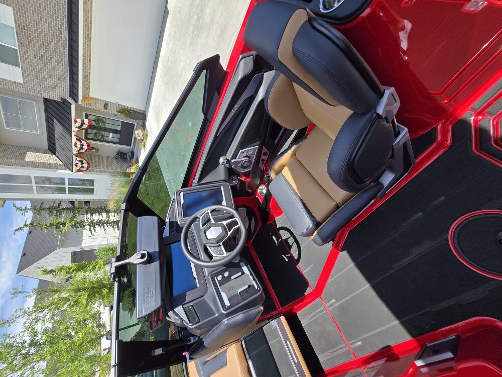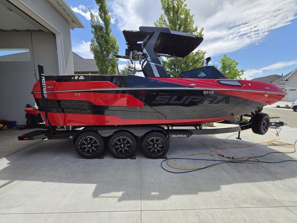 -MSRP $311,500.00 -Fire Red & Black Metallic -Black and Tan Interior w/ -Raptor 575, 6.2L Supercharged -Dual Stern Thrusters -Electric Power Assist Steering -Sundeck Flip Up Seats -4 Outlet Heater -Heated + COOLED Driver and Passenger Seats -Interior Washdown Shower -LED Docking Lights -RGB Lighting + Underwater lights -Power Stepdown Swim Platform -Sliding Rear Bench Seat + Table -Wireless Charging -Power Folding Tower + 4 Speakers + Clamping Board Racks -Power Folding Bimini Upgrade -Transom Remote -Full Cover (Black) -Tinted Windows -Ceramic Coating -Triple Axle Trailer, 18" Wheels + Spare -LED Runway Lighting -Transferrable Manufacturer Warranty