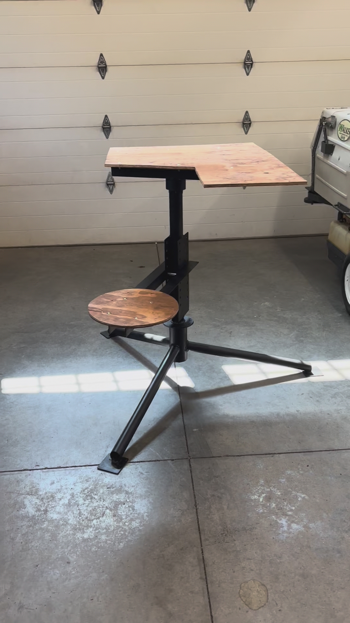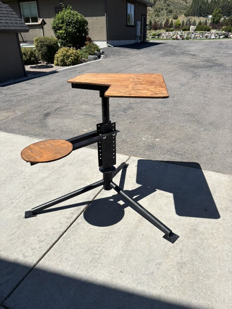 VenmoSolid built shooting table that breaks down into 4 pieces for storage. Table top and seat swivel to accommodate individual shooting positions.