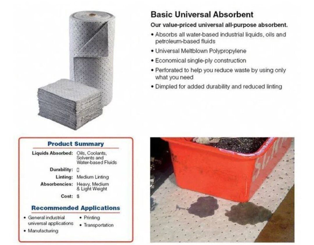 VenmoNew! This Sells online for over $105. Asking $70 cash / Venmo with pickup in North Ogden. Sorbent Roll, Universal, 38 gal Vol Absorbed per Pkg, 30 in x 150 ft, Gray, Polypropylene