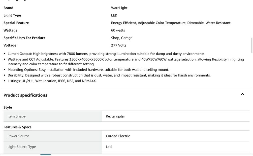 ApplePay4FT LED Vapor Tight Fixture, 7800 Lumen Max, CCT and Wattage Selectable, 120-277V\