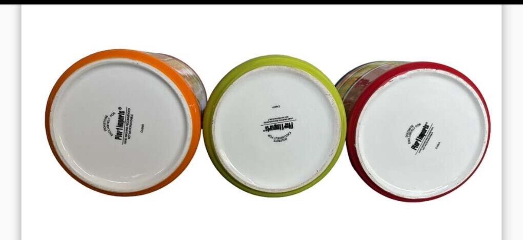 VenmoExcellent condition like new the tallest one is 7.25 the smallest one is 4.75 inches tall the medium one is 6.75 inches tall. No chips or cracks sealed with a rubber around each lid