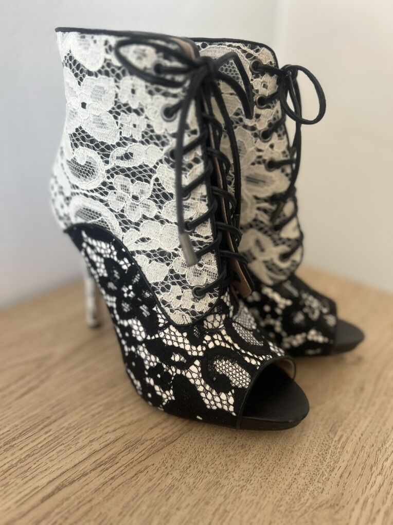 Worn once in excellent condition, lace pattern, black and white Madison party cocktail pumps pick up in West Jordan $10