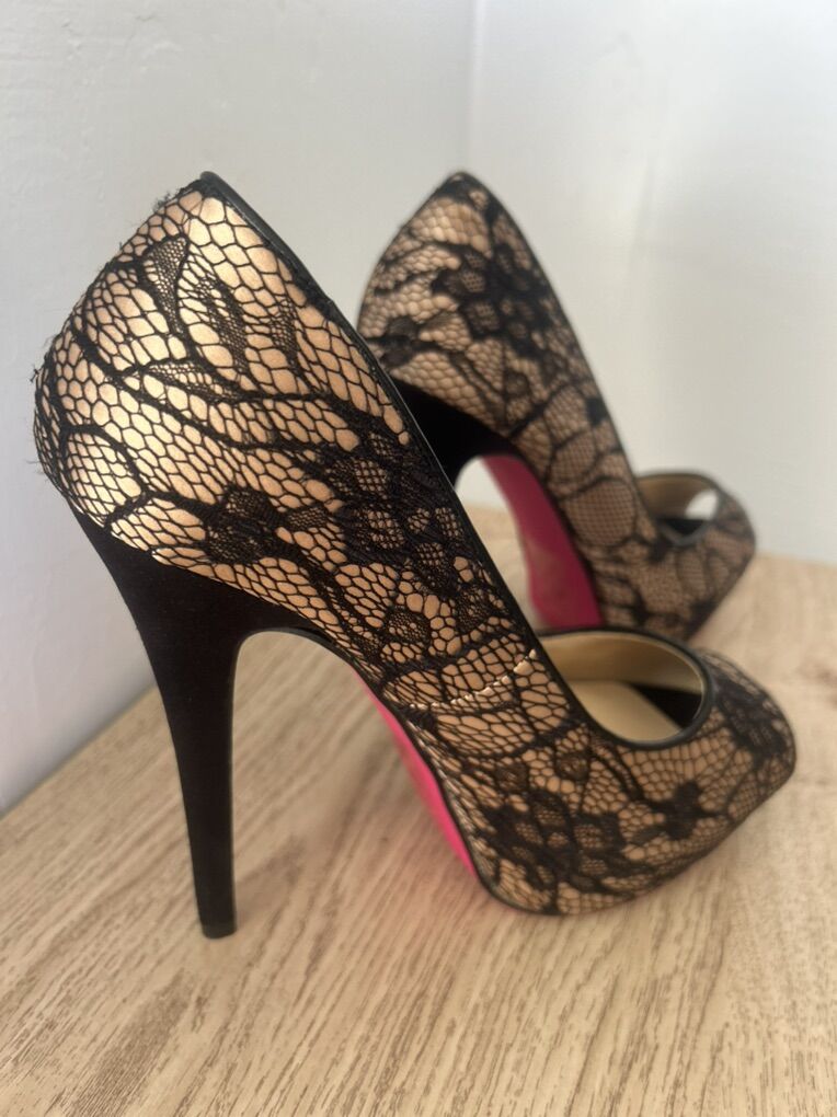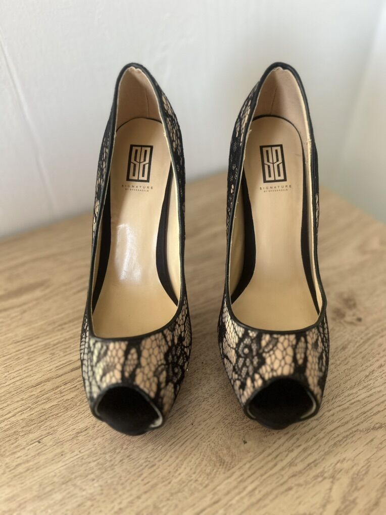 Signature by shoe dazzle, size 8, super cute nude/black lace with hot pink bottoms super cute and excellent condition pick up in West Jordan, $10