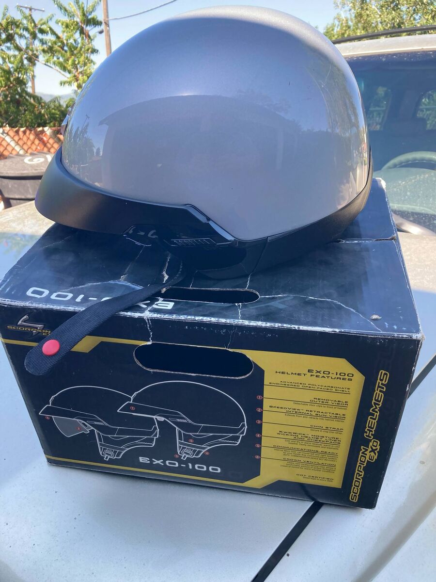 VenmoGrey Scorpion Helmet exo 100 size XL used with light wear marks on plastic.