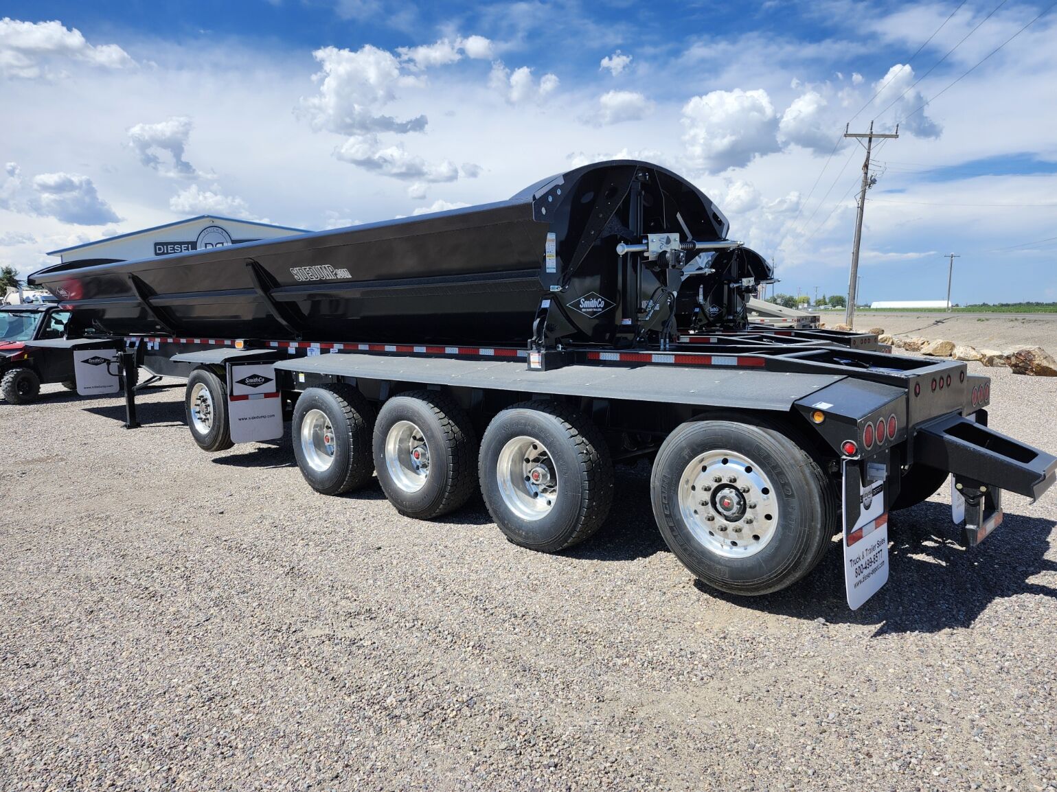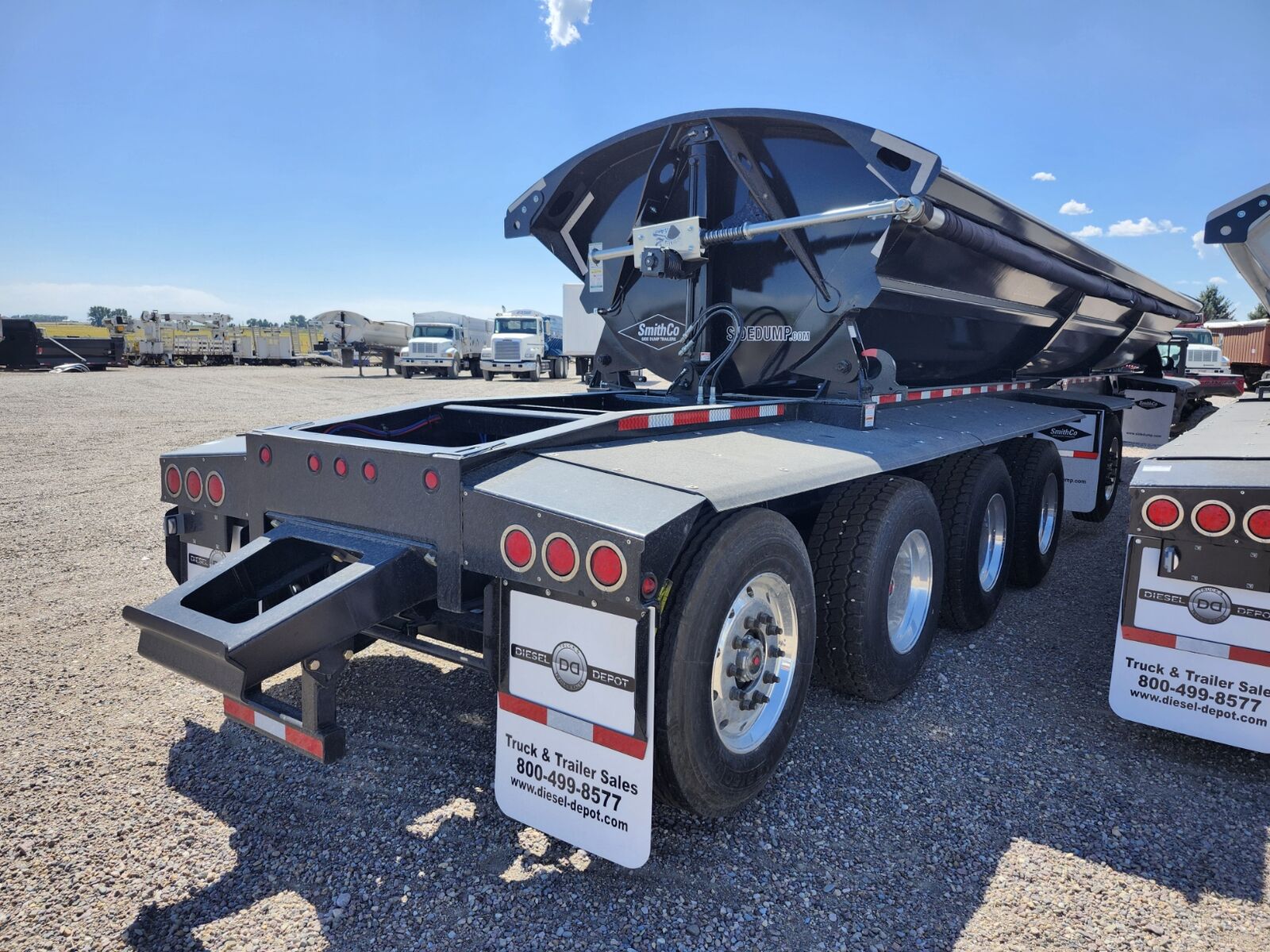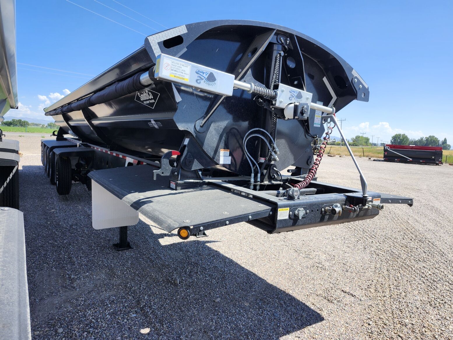 Made in the USA!! 49' trailer with 38' tub, 34 cubic yard capacity, 97"-54" and 60" axle spacing, 18" Kingpin setting, 3 Fixed 25K Axles and 2 Steerable/liftable 16,600 axles (1st and 5th), 2 speed landing gear, Electric roll over tarp, 1/4" AR450 hardened steel tub, Tarp lock-out switch, Push block, Hydraulic valve on trailer, Super single 385/65R22.5 tires and 295/75R22.5, Requires truck wet kit with minimum 10 gal hydraulic reservoir and 25-30 GPM hydraulic pump, (Price + FET and sales tax)