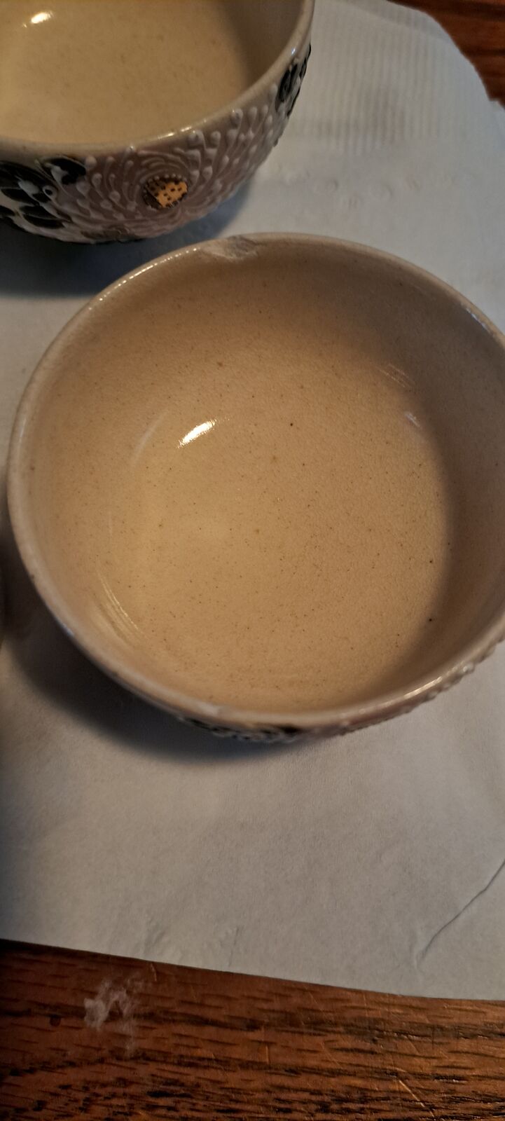 One cup has a chip, as seen in the pictures.