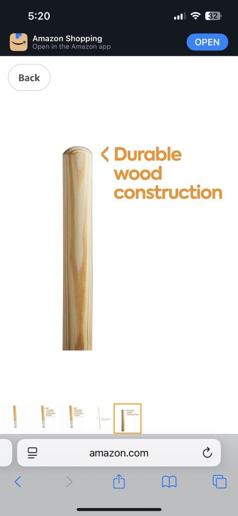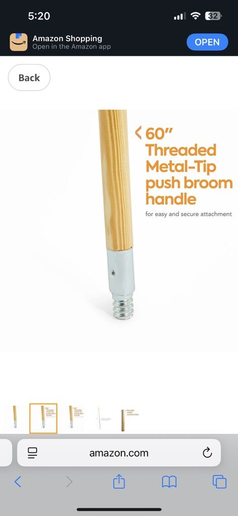 60-Inch Wood Push Broom Handle, Threaded Metal Tip