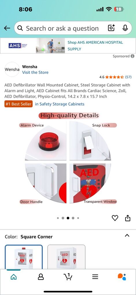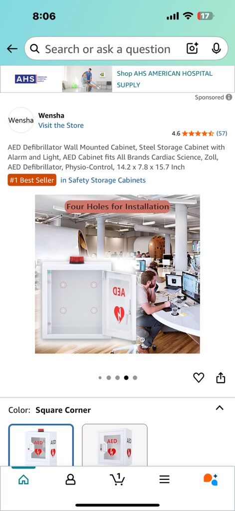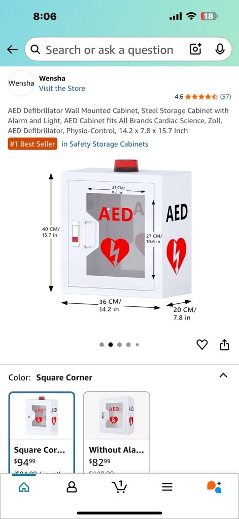 VenmoWensha AED Defibrillator Wall Case New In The Box. Strap lock and key steel cabinet wall mount storage case.