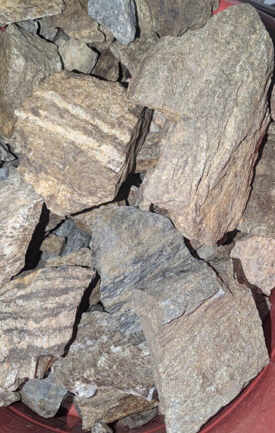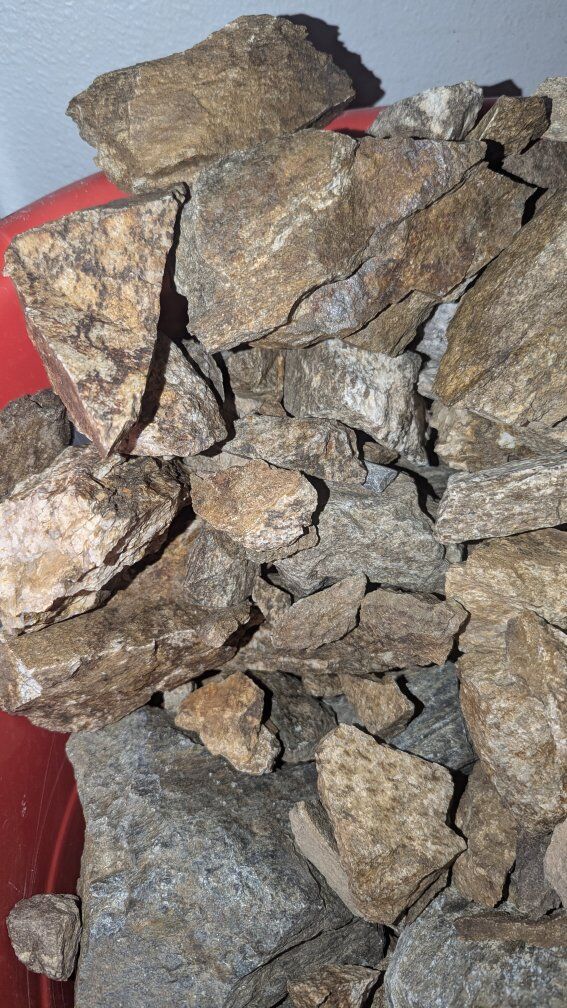 ZelleBIG RED TUB (big red not included)OF GOLD RICH ORE, PROBABLY A FEW HUNDRED POUNDS BUT NOT SURE.