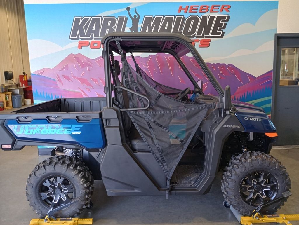 2025 CFMOTO UFORCE 1000 Built to get stuff done, the UFORCE 1000 delivers on capacity and power. You get a roomy bench seat for three adults, a 1,000-lb. capacity gas-assisted tilting cargo box, a 10.6-gallon fuel tank, plus a high clearance suspension. ‘Nuff said. Features may include: 963cc V-Twin The 963cc V-twin features eight valves and a single overhead camshaft (SOHC). With electronic fuel injection (EFI) and efficient liquid cooling, this engine packs a punch, delivering an impressive 71 hp and exceptional medium and low-speed torque. It gives you a towing capacity of over 2500 pounds. Pulse™ Digital Display The TFT (thin film technology) color display keeps you tuned into an array of engine vitals and comes with a Bluetooth call indicator. 1000 Lb. Capacity Cargo Box In addition to its large capacity, the cargo box is equipped with a nitrogen gas-assisted dump box, which makes it easy to unload cargo quickly and efficiently. Suspension System The combination of a front and rear double wishbone independent suspension with double-row tapered roller bearings and variable pitch hydraulic spring shocks enables you to handle rough terrain with improved comfort, more stability, and greater load-bearing capacity.