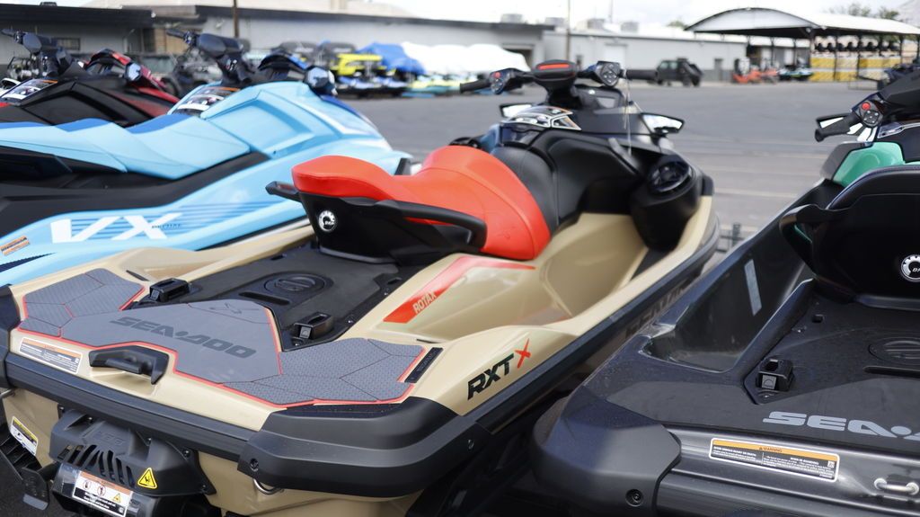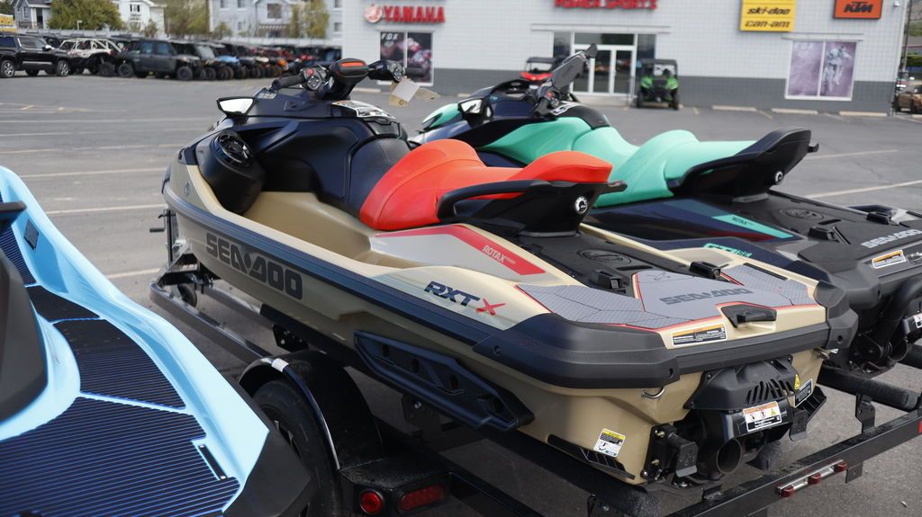 LATE SEASON SPECIAL! 2025 Sea-Doo RXT-X™ 325 Metallic Tan / Lava Red Premium Soak It All In Uncompromised offshore performance Sea-Doo RXT-X Chart new adventures with a revolutionary combination of performance and confidence. 325 horsepower drive unparalleled excitement. The intelligently designed hull and rider-inspired seating offer maximum control in any water conditions. Features may include: Rotax Engine Rotax® 1630 ACE™ - 325 engine Record-setting power A designed Rotax 1630 supercharged engine produces a spectacular 325 HP that truly re-defines the high-performance segment. Hydraulic Steering Damper Improved rider control Premium riding precision Three steering positions to choose from for a smoother way to keep your Sea-Doo heading in the right direction. The damper system lessens the impact of rough water on your ability to handle the watercraft. ST3 Hull Stable and Predictable Hull Innovative Performance The benchmark for rough water handling, stability and offshore performance. The ST3 platform offers easy boarding, plenty of space to move about on deck and superior confidence. Premium Convenience Fully connected Intuitive features for a better ride Full-color 7.8-inch display with incredible visibility and a new level of functionality. Bluetooth, USB and smartphone app integration provides music, weather, navigation and more. The 100W waterproof, fully integrated BRP Bluetooth Audio Premium system completes an exceptional onboard experience. X-Performance Features Race-inspired control Purpose-Built for Performance Riders Supersize the excitement. X sponsons, polished impeller and extended variable trim system with launch mode allow you to corner harder, accelerate quicker and dial in total control.