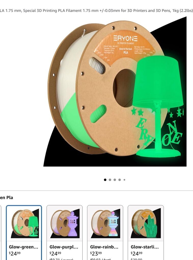 VenmoEryone glow in the dark Filament. All new, vacuum sealed. 1kg 1.75mmrolls Awesome colors!