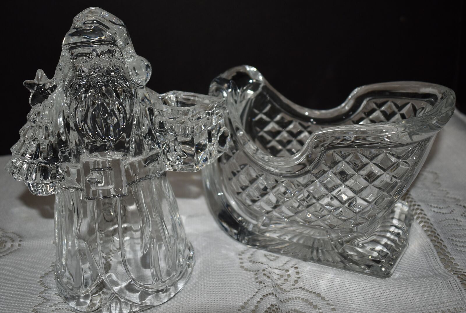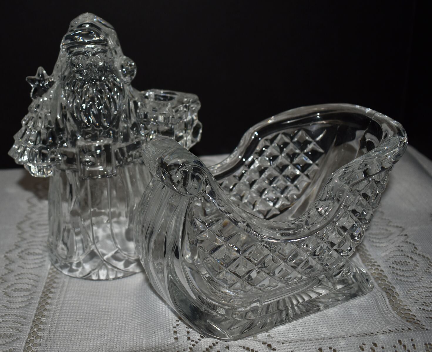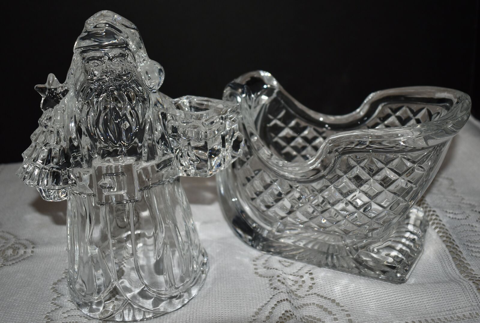 IT MEASURES…The Santa measures… 7 1/2 inches tall and 5 3/4 inches wide across at the widest area. The base at the bottommeasures… approx. 4 inches across. The Sleigh Measures approx. 5 inches tall and 7 inches wide and it is approximately 4 1/4 inches from side to side.