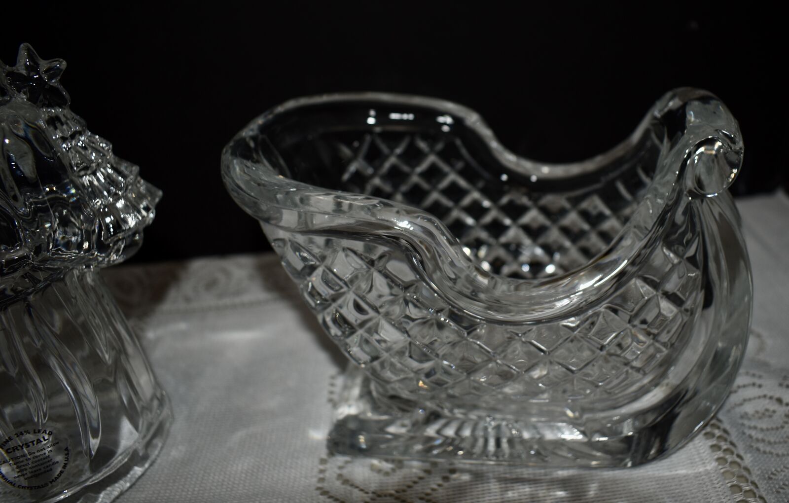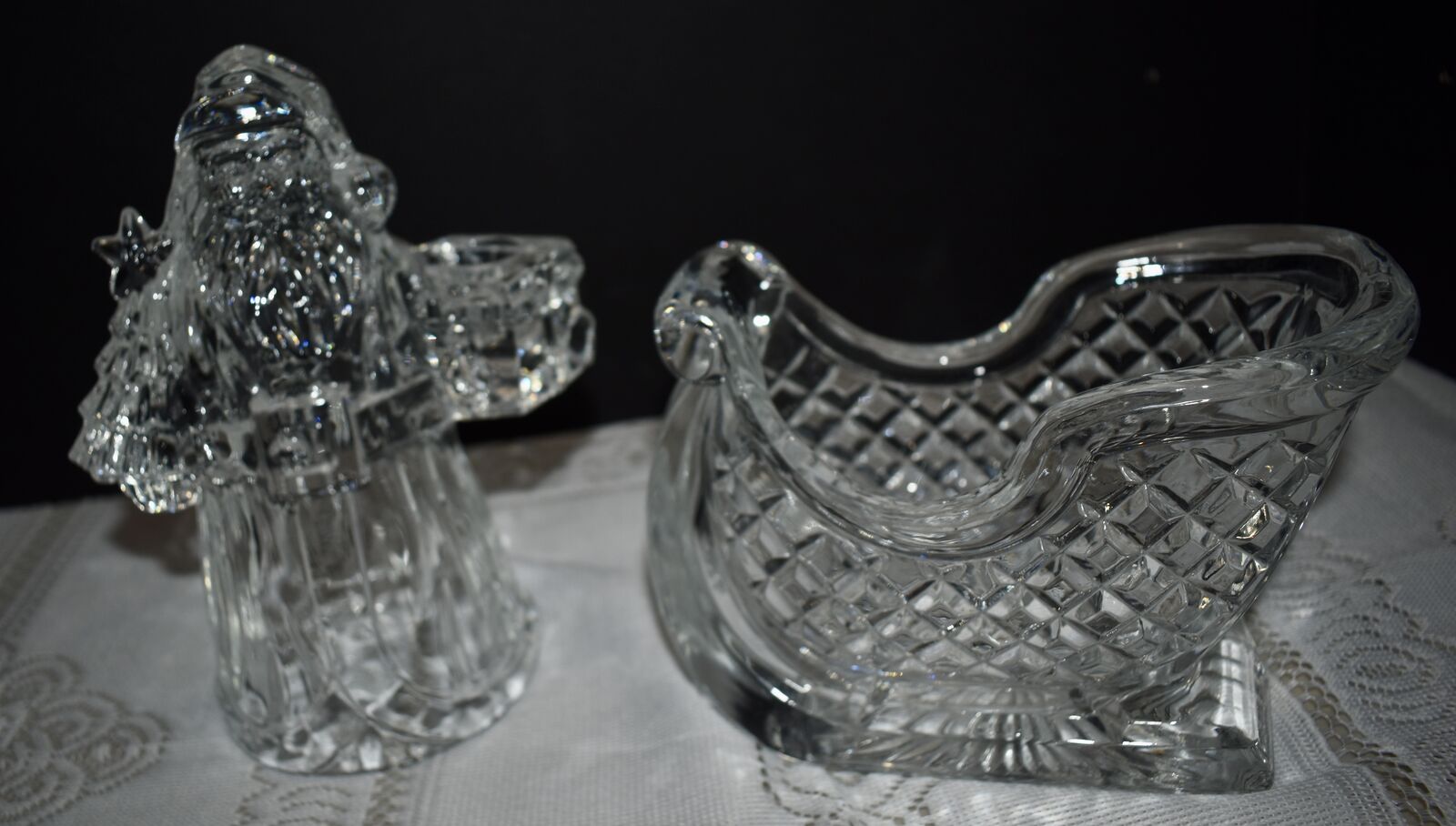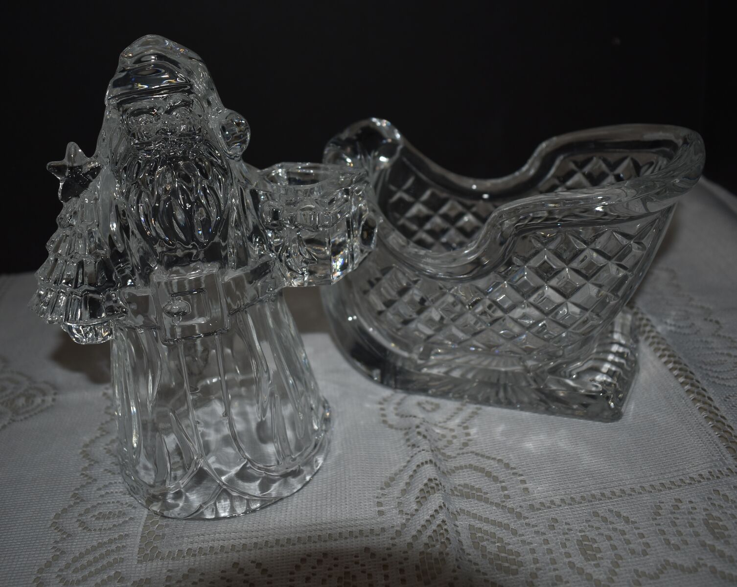 IT MEASURES…The Santa measures… 7 1/2 inches tall and 5 3/4 inches wide across at the widest area. The base at the bottommeasures… approx. 4 inches across. The Sleigh Measures approx. 5 inches tall and 7 inches wide and it is approximately 4 1/4 inches from side to side.