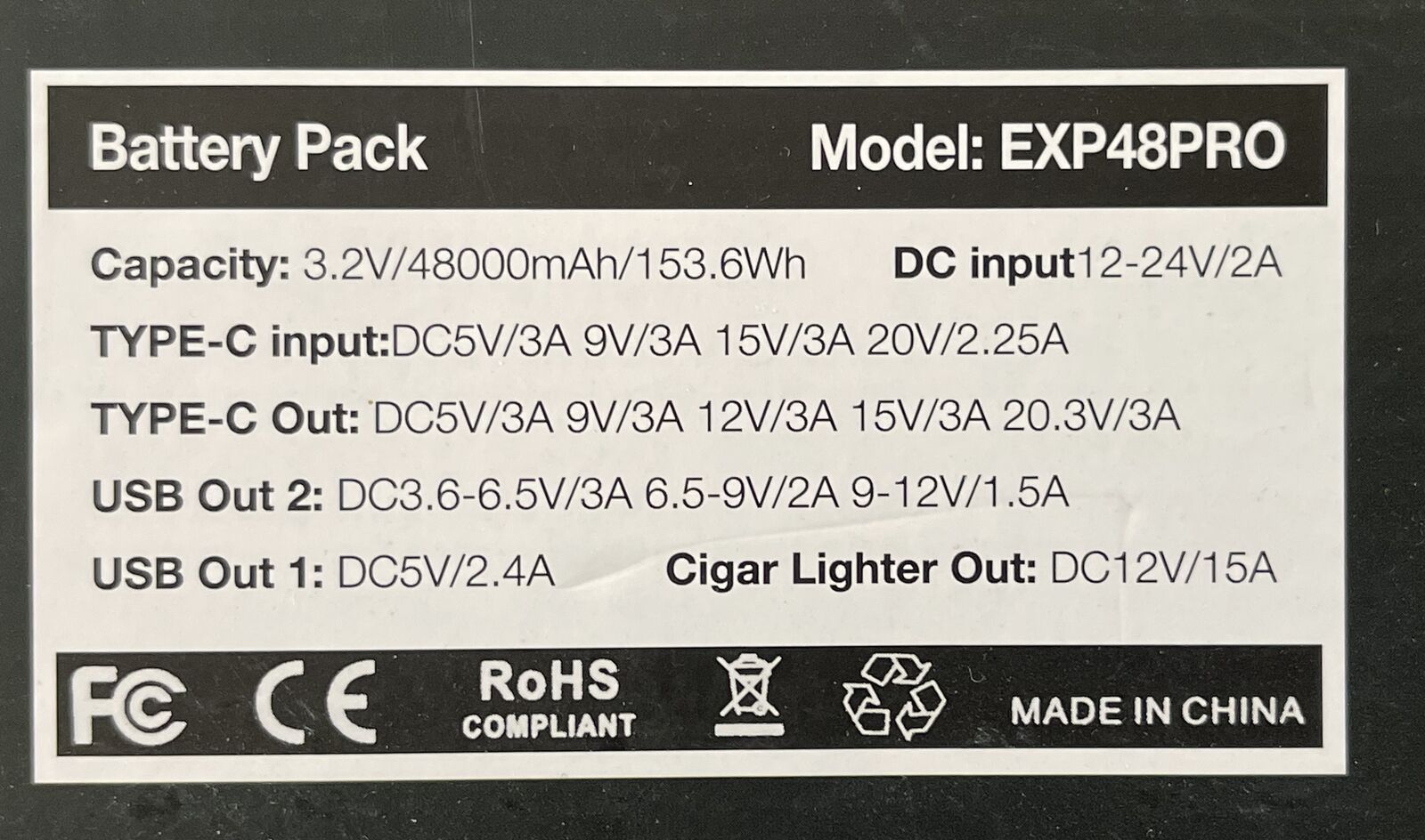 Capacity: 153.6-Watt Hours (Wh)/12.8 Amp Hours (Ah) @12V / 48,000 MilliAmp Hours (mAh) @ 3.2V.