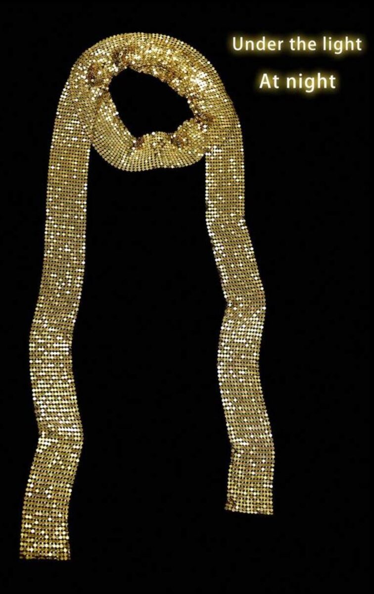 Women Gold Sparkle Metal Sequins Neck Tie Scarf Glitter Long Evening Party Accessory Thin Rave Skinny Mesh Neckerchief 60"