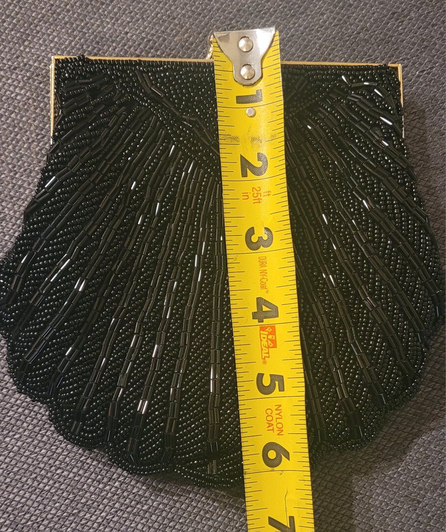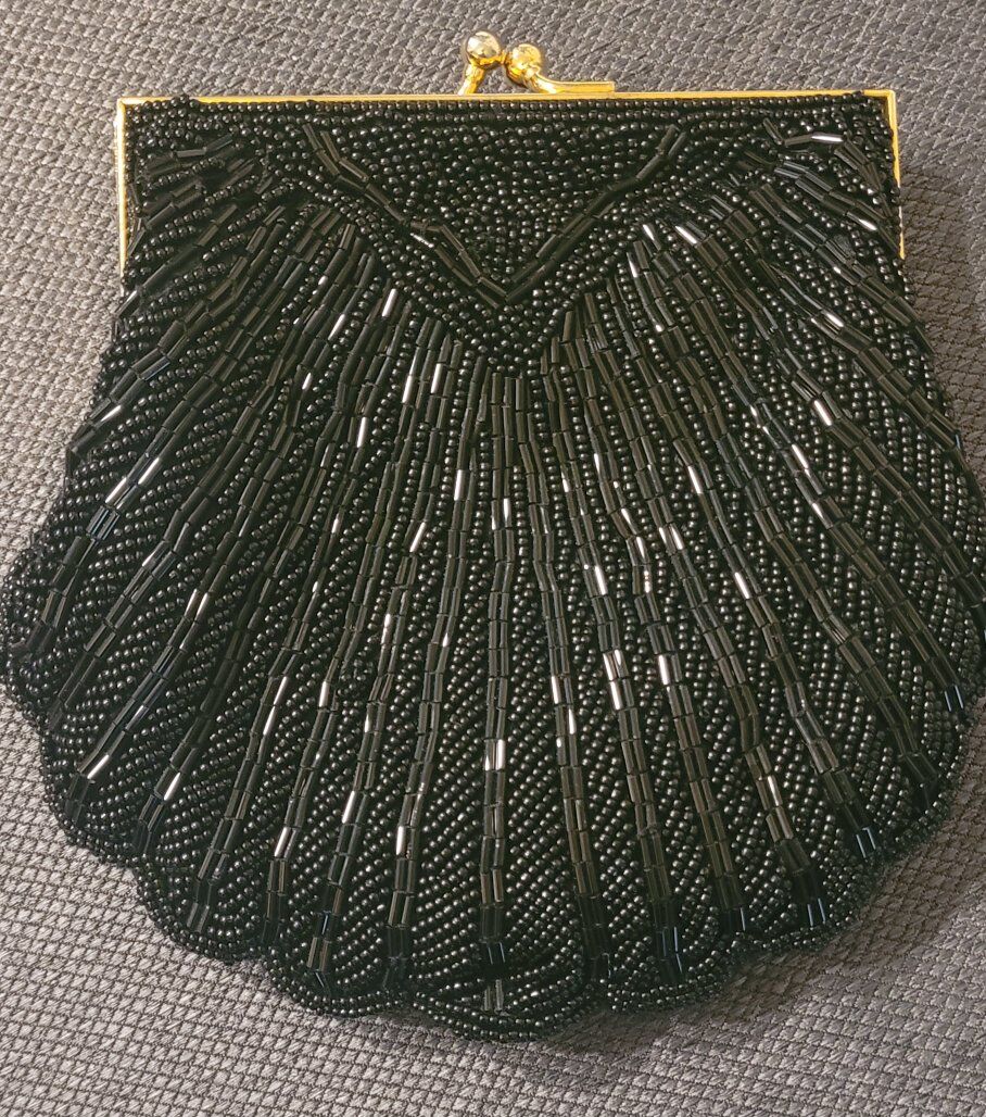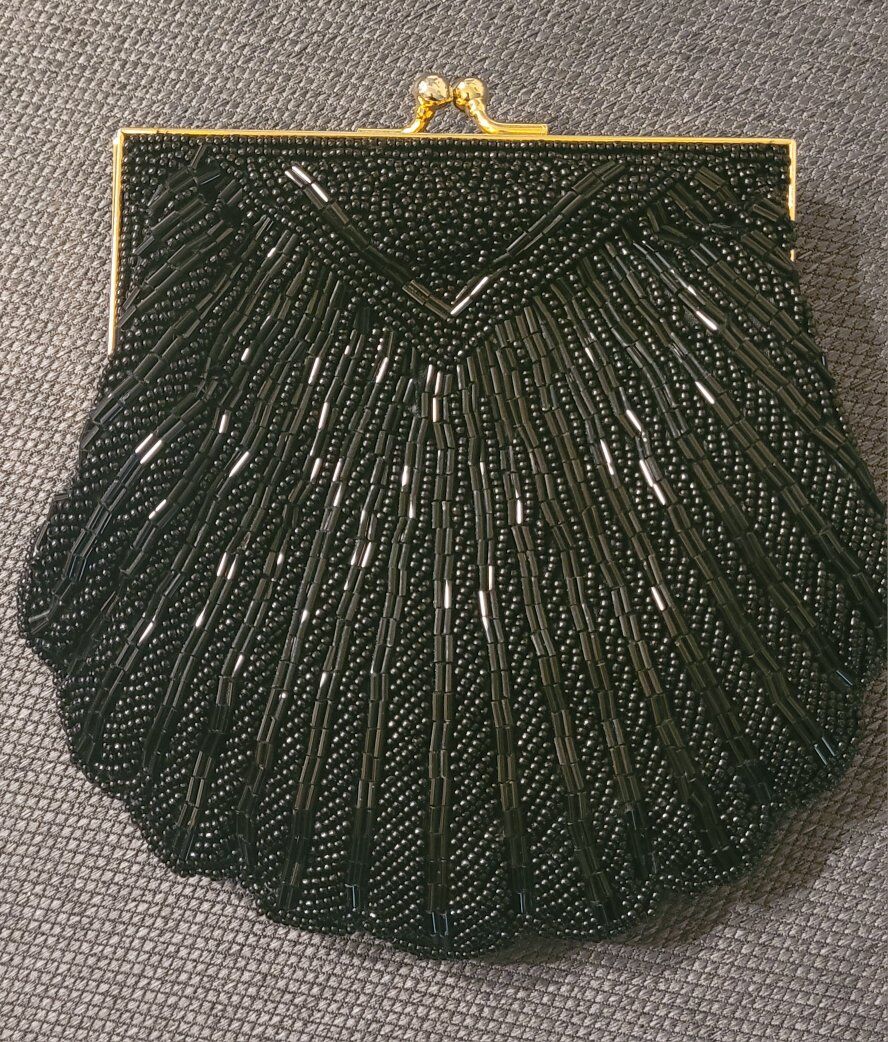 The purse features a classic black color that complements any outfit, making it a versatile addition to your collection. Its unique clam shell shape adds a touch of charm and distinction, setting it apart from other evening bags. Whether it's a gala, a wedding, or a formal dinner, this elegant piece will be a delightful accompaniment to your formal attire.