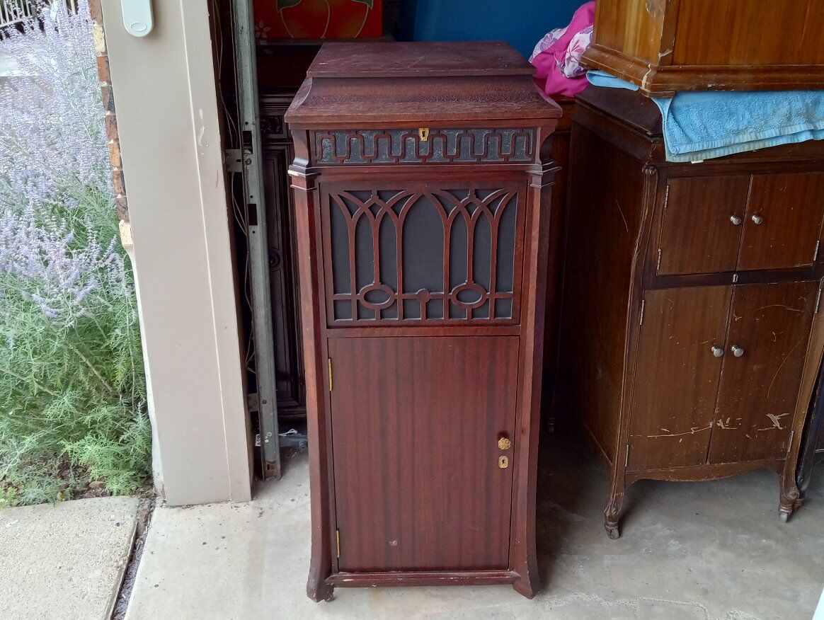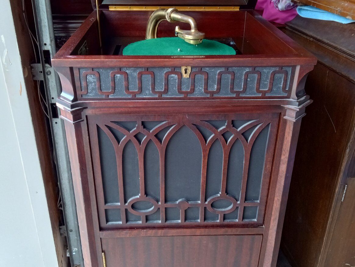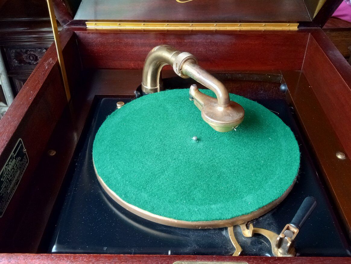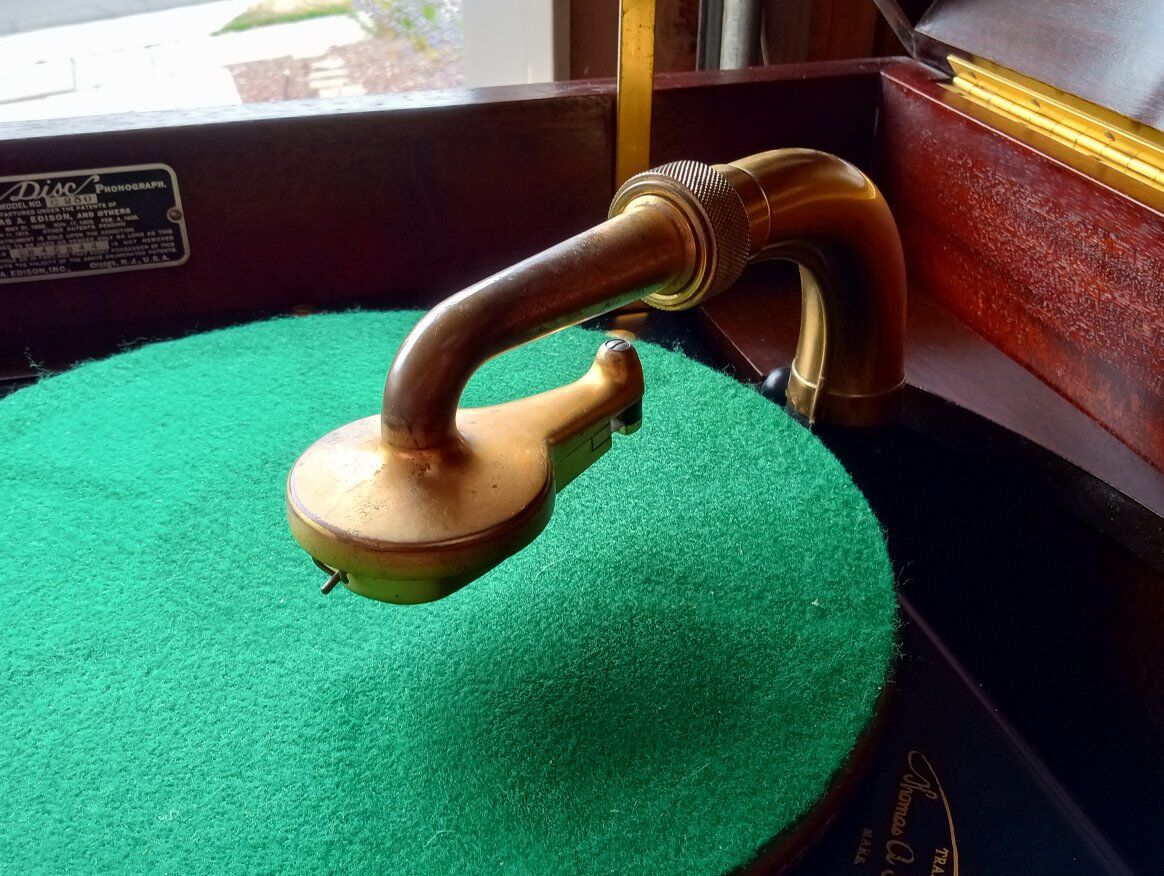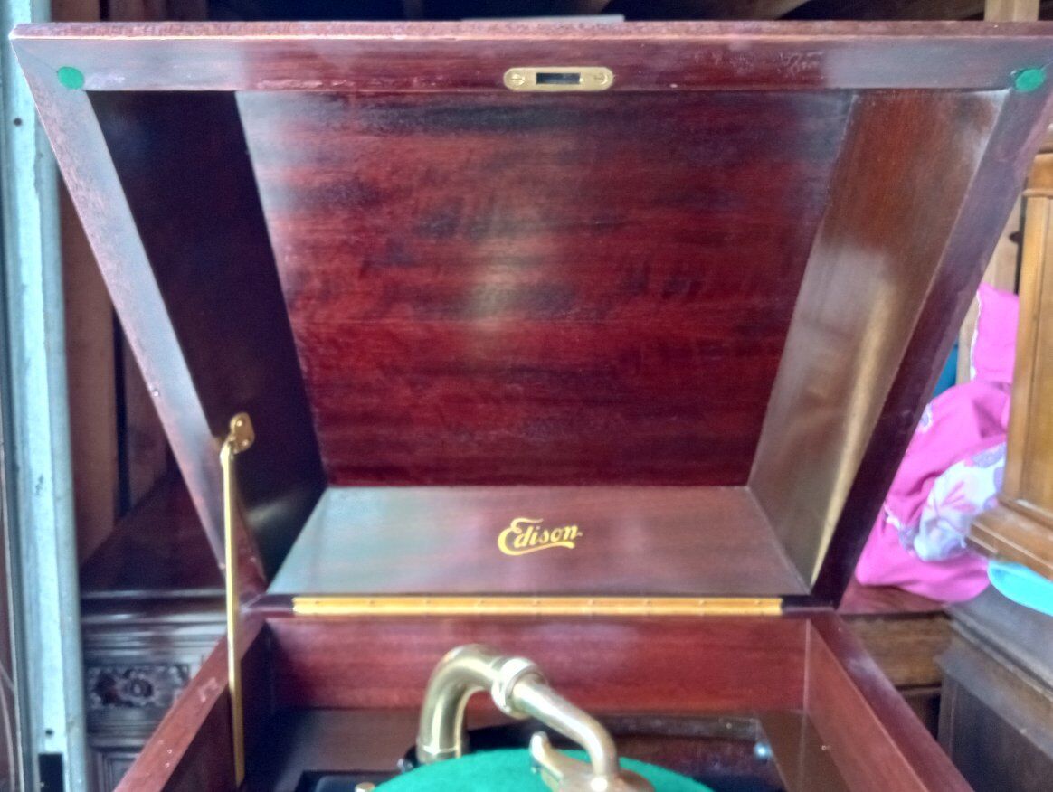 Antique Edison Diamond Disc Phonograph Model C-250, Official Laboratory Model (Serial No. SM 45844). Excellent working condition with minor cosmetic chips and scratches. Features gold-plated tonearm, reproducer & crank, two pull-out record drawers, and a sturdy mahogany cabinet with ornate detailing. Plays beautifully and includes 5 Diamond Disc records. Local pickup only in Sandy, Utah.