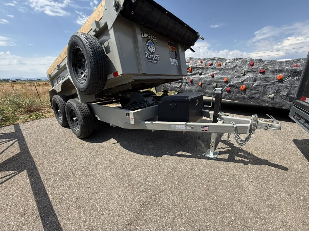 VenmoCompass Dump trailer demo 5’ x10’ dumps Demo trailers light use. 2 5k axles braking 2 5/16” hitch Scissor lift hydraulic system Shore power/charger Led lights Spare tire Load Cover Barn doors Sandblasted/Zinc Primer/Powder coated