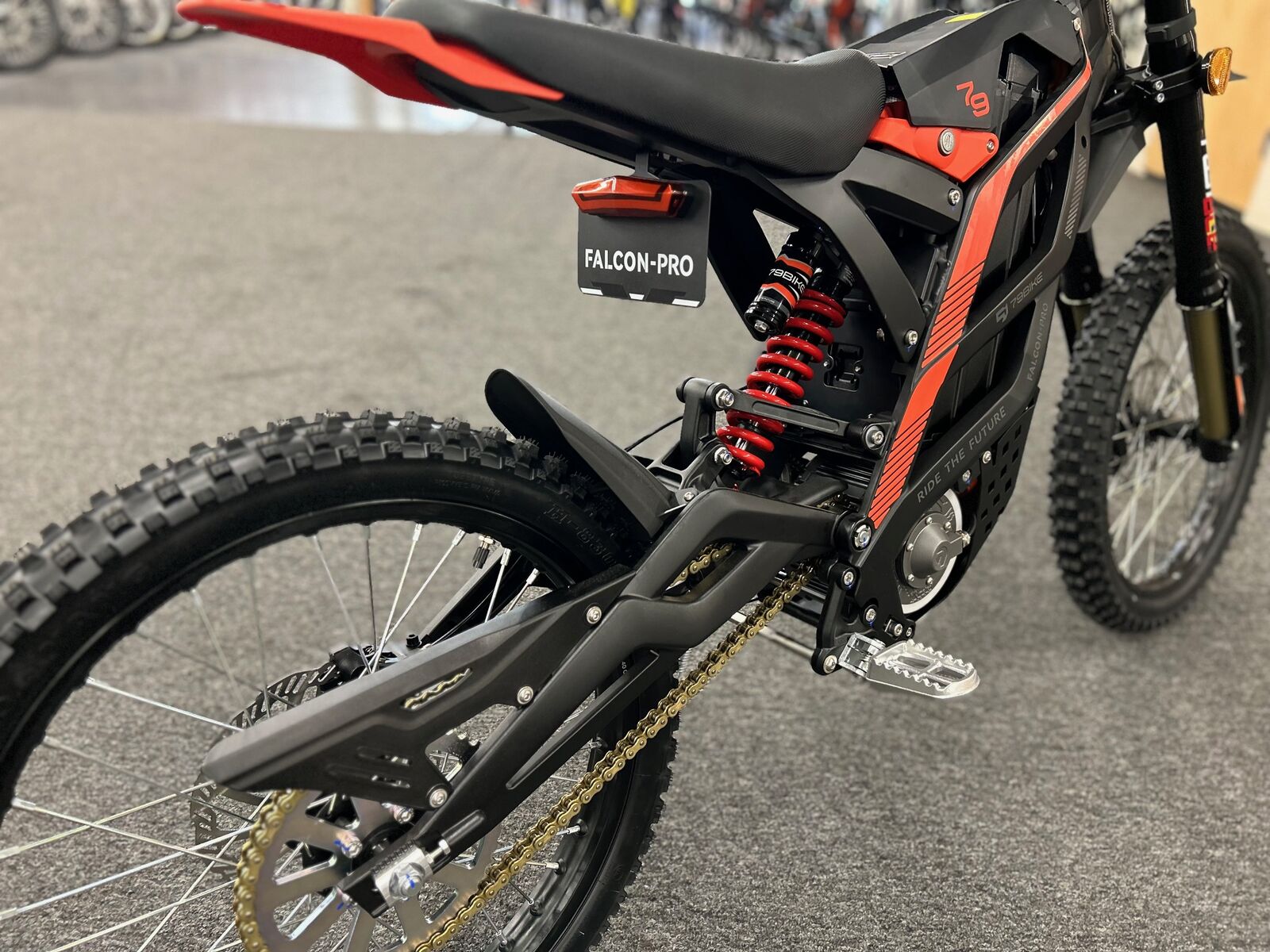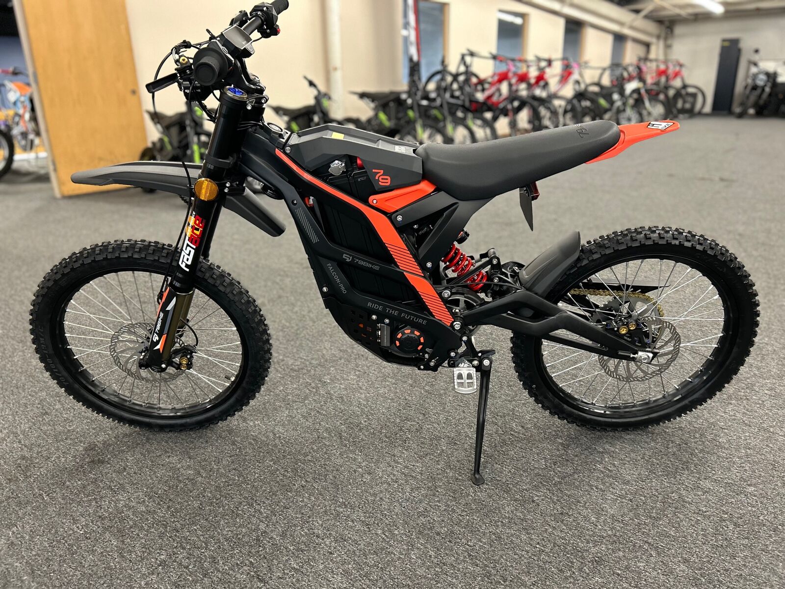 79Bike-Falcon Pro is a high-performance electric dirt motorcycle specially designed for cyclists. It is equipped with Range of 75 miles and a top speed of 56 mph, using Fastace 2.0 Fork, allowing you to ride quickly and easily without any worries. 79BIKE is about more than just bikes. it’s about being fearless, pure, future-focused, and creative. That's what we stand for, and it's what drives everything we do!