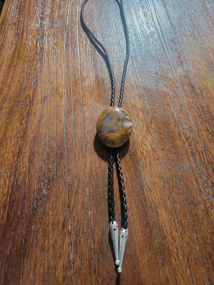 This is a beautiful moss agate bolo tie, it is new Pickup in Payson or I can ship for $5