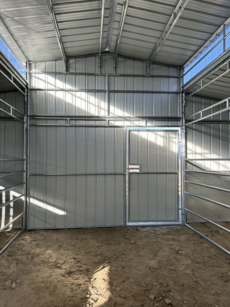 3 12x12 stalls on each side with a 12’ breezeway down the middle. Price includes sliding barn doors