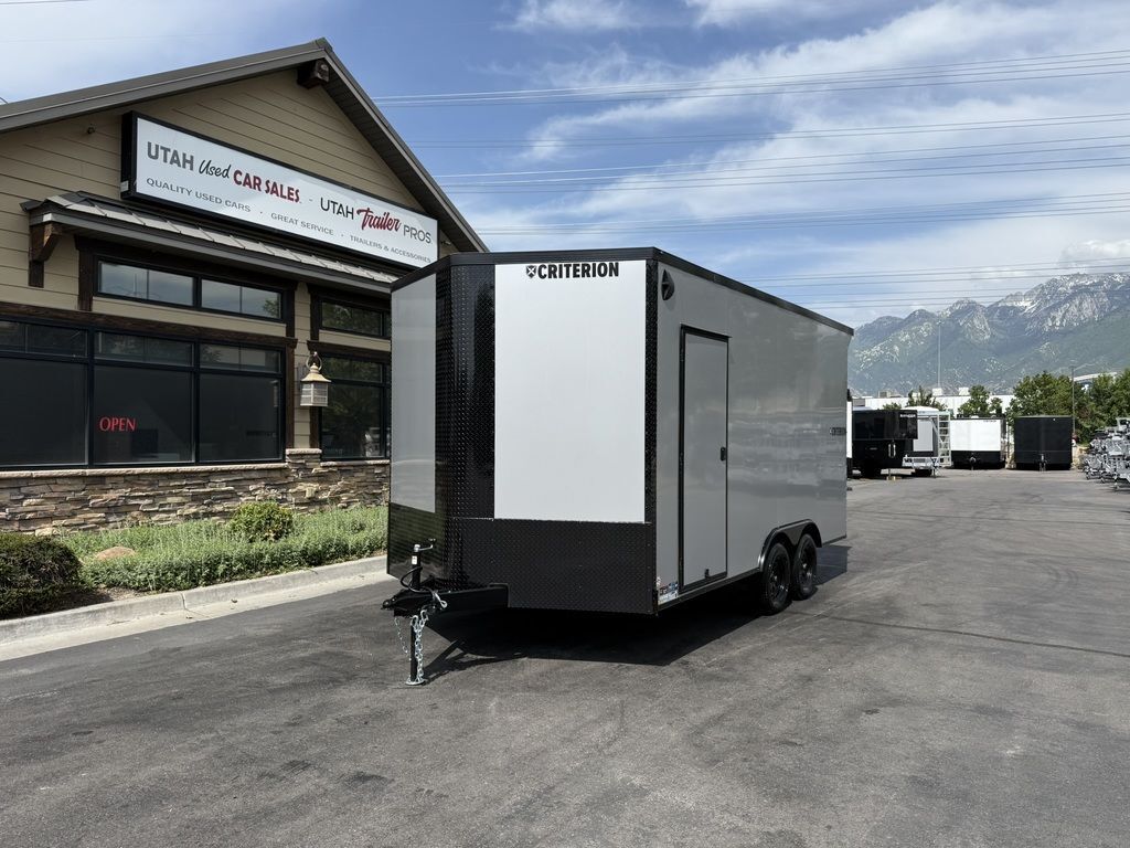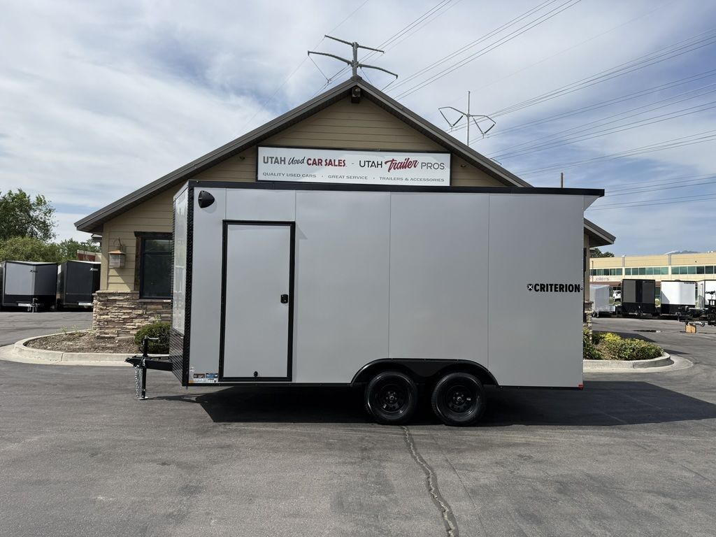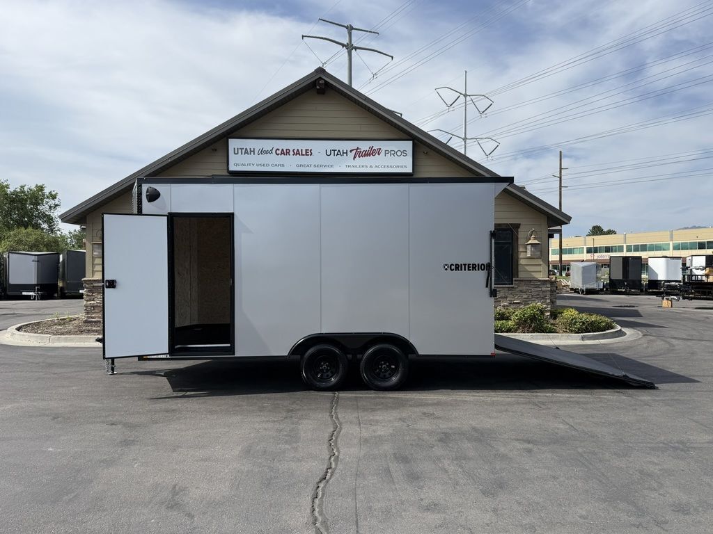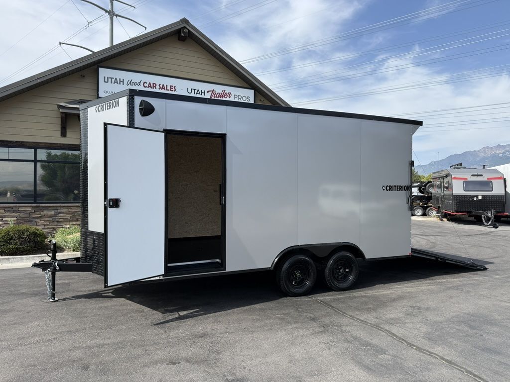 LIMITED TIME $131 A MONTH WITH ZERO DOWN WITH OUR SPECIAL LOCAL CREDIT UNION PARTNER!!! NO PRE-PAYMENT PENALTIES!!! CRITERION UTV Pkg!!! 6 inches added height for an 87 Inch Rear Entry Height, and a 90-inch interior Height!!! Extra Tough Poly Bead Rubber Floor! Industry Leading .080 PolyCore Aluminum Exterior!!! Rear Spoiler with LED Load Lights! Roof Vent. 6x 5000# Heavy Duty Recessed and back plated D-Rings!!! Drivers Side Side Access Door! Fuel Pass Through Door! Criterion Trailers are Super Premium Steel Framed Trailers with a 3 Year Factory Warranty!!! Come take a look at Criterion to see unparalleled quality!!! 7SA009222