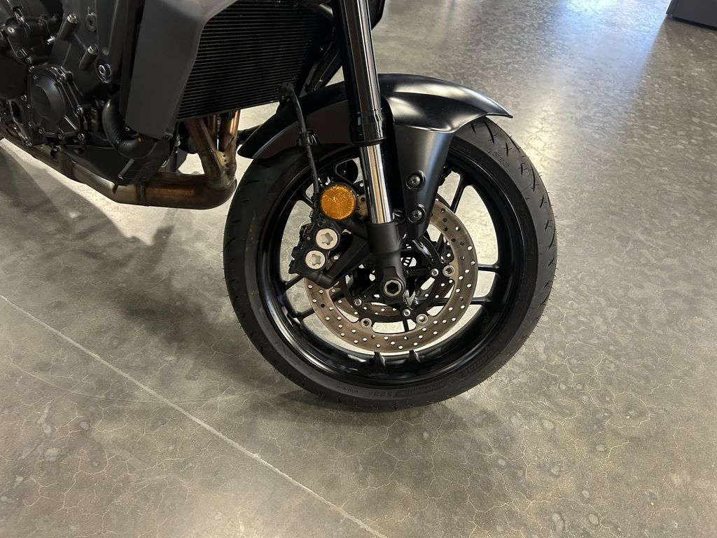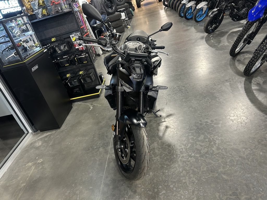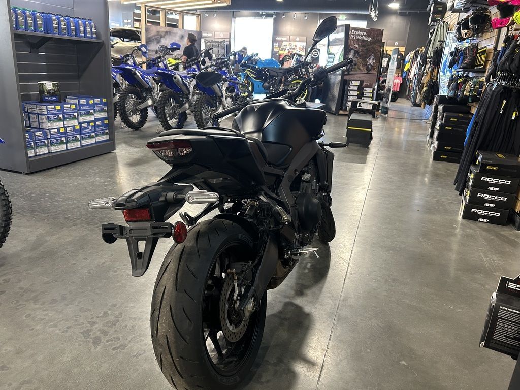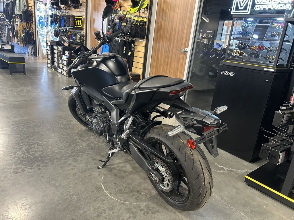 2025 Yamaha MT-09UNLEASH YOUR DARKNESSThe industry benchmark in Hyper Naked performance with razor sharp handling, thrilling 890cc triple-cylinder power, class-leading technology and distinctive Dark Side styling.Features may include:Aggressive Next-Generation StylingAggressive next-generation styling takes the Hyper Naked look to a new level with sharper, more defined lines and minimal bodywork. A bi-functional LED headlamp is shrouded in a cover, creating a compact and unified relationship with the fuel tank and tail section, while a more forward-leaning stance maintains the edgy street aesthetic synonymous with the MT name.Powerful 890cc Three-Cylinder EngineYamaha's renowned 890cc liquid-cooled CP3 engine is light, powerful and provides a thrilling wave of torque from low rpms. A combination of carefully tuned induction sound and distinctive crossplane triple exhaust note provides a resonance which only heightens the feeling of acceleration. Throttle valves are governed by the Yamaha Chip Controlled Throttle (YCC-T) system enabling finer actuation and precise control.Lightweight CF Die-Cast Aluminum FrameThe MT-09 features an advanced, lightweight aluminum frame refined to showcase the MT's signature agility. To ensure both straight-line stability and handling performance, the balance of longitudinal, lateral and torsional rigidity are all carefully considered and finely tuned. The frame is manufactured using Yamaha's groundbreaking controlled fill (CF) die casting technology which contributes to its light weight.Advanced Six-Axis IMUThe MT-09 features an advanced six-axis Inertial Measurement Unit (IMU) that matches the base performance of proven IMU in the YZF-R1 Superbike. Data collected from the IMU and wheel speed sensors enable a high-tech suite of rider aids including a four-mode Traction Control System (TCS), Slide Control System (SCS), front wheel Lift Control System (LIF) and a two-mode Brake Control System. Each of these systems can be turned off and Traction Control, Slide Control and Lift Control can have their levels of intervention adjusted to preference. With its best-in-class electronic control technology, the MT-09 gives you the ultimate versatility in varying weather and surface conditions.Five-Inch Full-Color TFT Display with Integrated SwitchgearA full-color five-inch TFT display provides the rider with the option of four different themes to suit specific riding situations or individual preference. The display is navigated through integrated handlebar switches. Button shape and feel have been extensively refined to provide intuitive operation in a compact, easy-to-use solution.