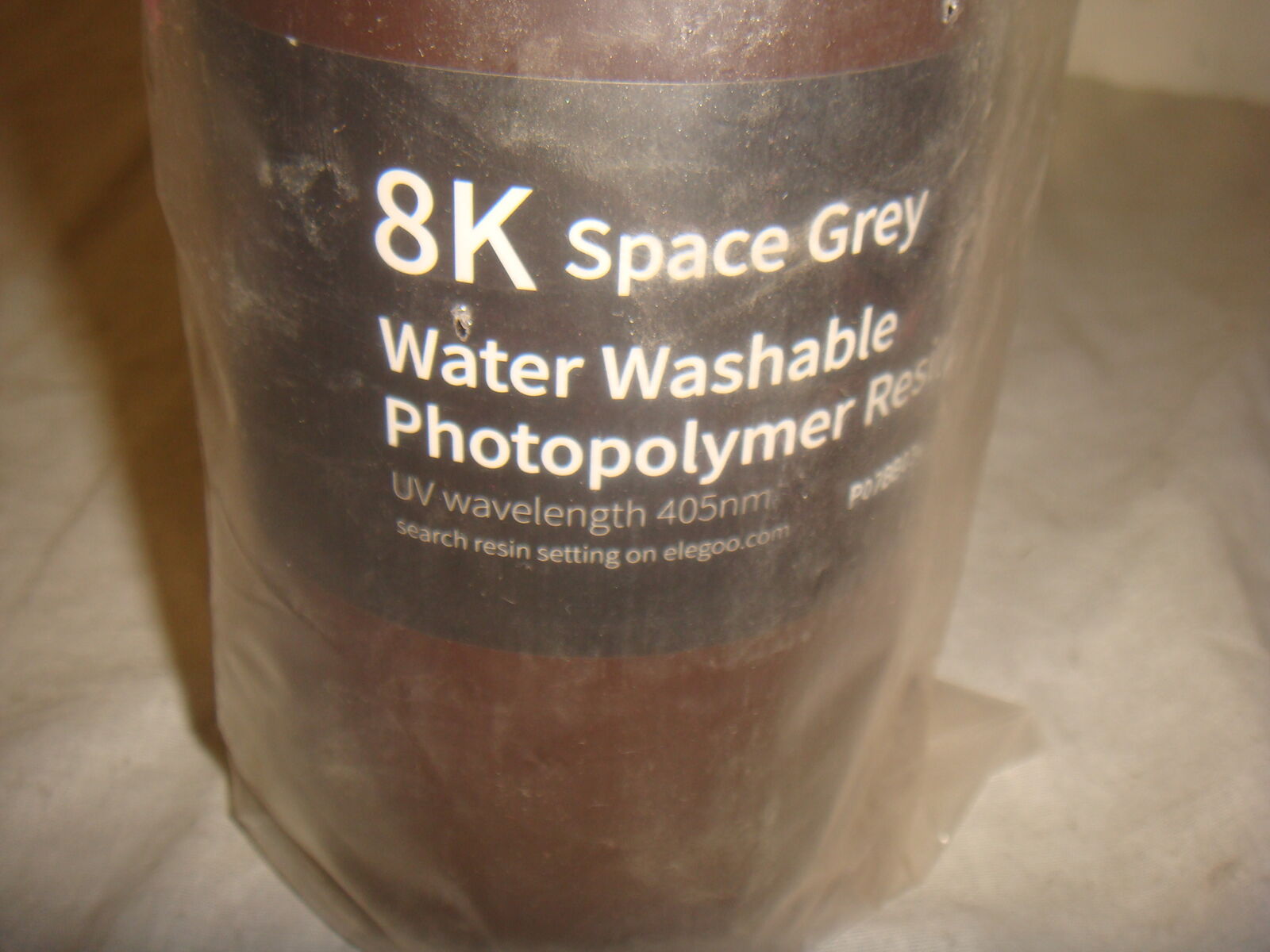BRAND NEW 1KG BOTTLE OF ELEGOO 8K SPACE GREY WATER WASHABLE PHOTOPOLYMER UV RESIN 405NM WAVELENGTH. This is new, sealed, never opened! It comes with everything shown. This is your chance to save big-time so don't miss out!!