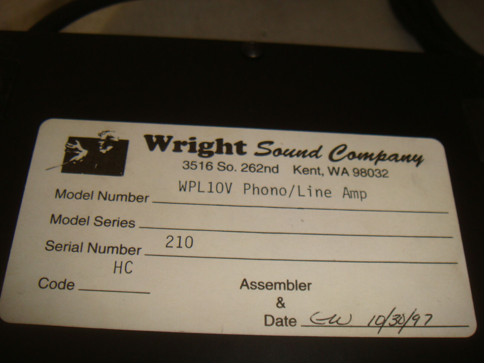 WRIGHT SOUND COMPANY WPL10V PHONO STAGE PREAMP WITH SPS04 TUBE POWER SUPPLY & A SELECTION OF TUBES. These are used with a few minor surface marks and signs of use, but are in overall excellent condition! They work beautifully and come with a selection of tubes one can try with it. These are rare and hard to find. Sonically wonderful Preamp built by George Wright. All Tube.