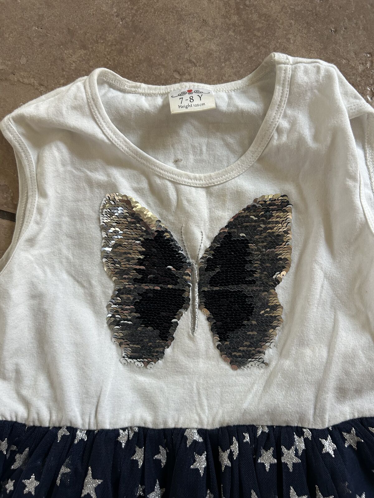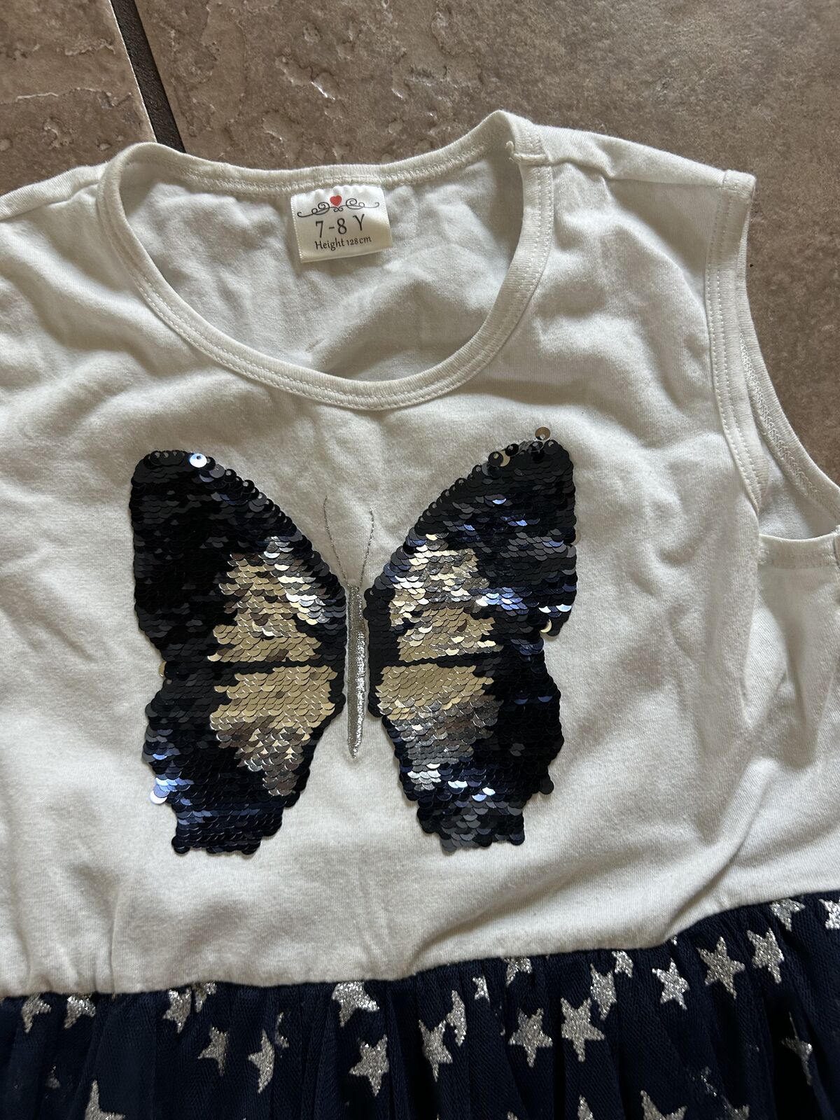 I have a 7/8 Girls Dresses Flip Sequin Heart, Short Sleeve Girl Dress for $10 cash. This is like brand new and has worn just a few times. This is a machine washable dress. This has been in a smoke/pet free home. Contact me to see.